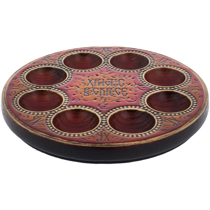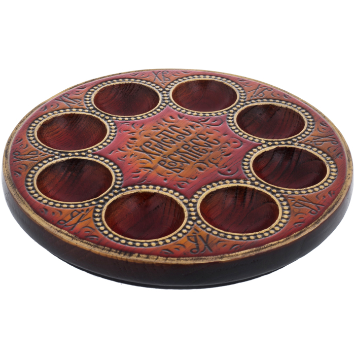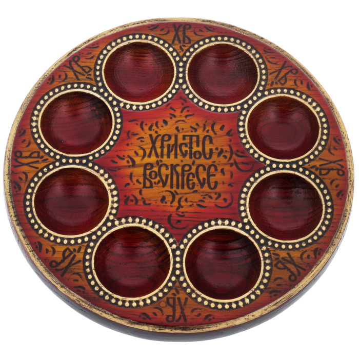 Пасхальная тарелка из натурального дуба, украшенная гравировкой и орнаментальными элементами, предназначена для торжественной сервировки пасхальных яиц. Её классическая форма и лаконичный, но выразительный декор подчёркивают уважение к традициям праздника и вкус к утончённым деталям. Природная текстура дерева придаёт изделию тепло и живую фактуру, делая его не просто предметом утвари, а семейной реликвией.