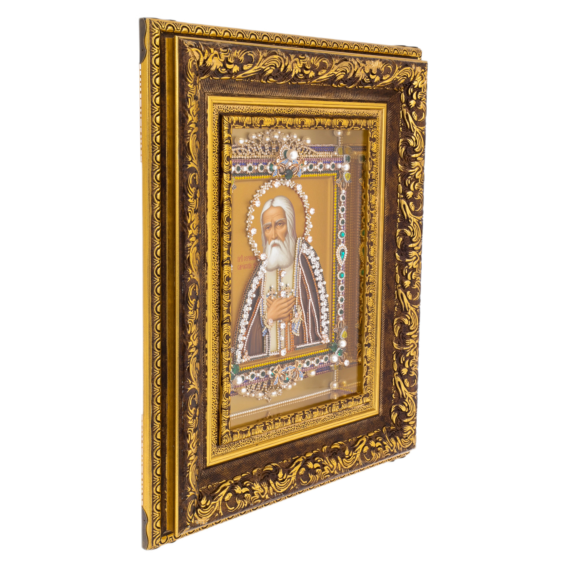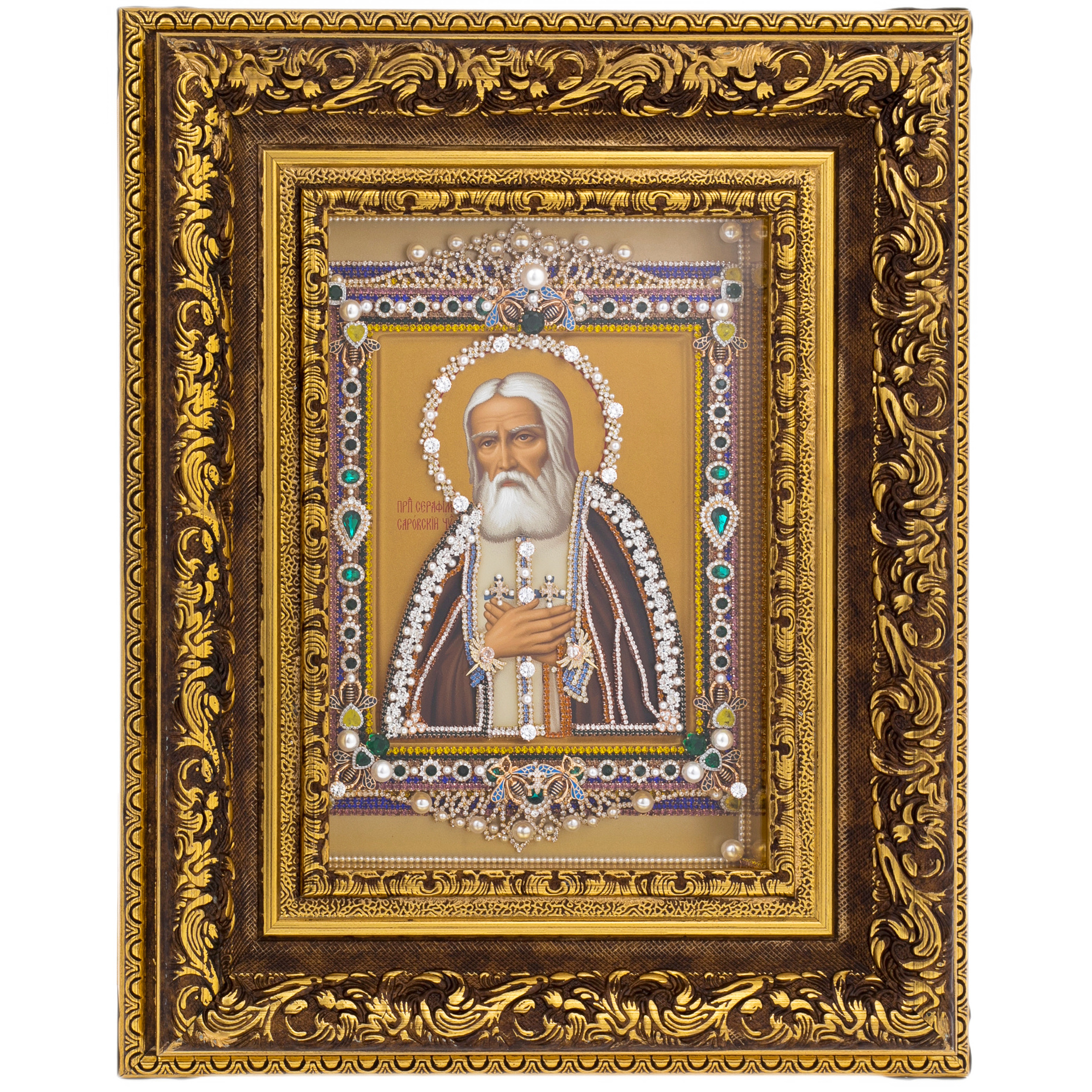 Икона с драгоценными камнями "Преподобный Серафим Саровский" с жемчугом