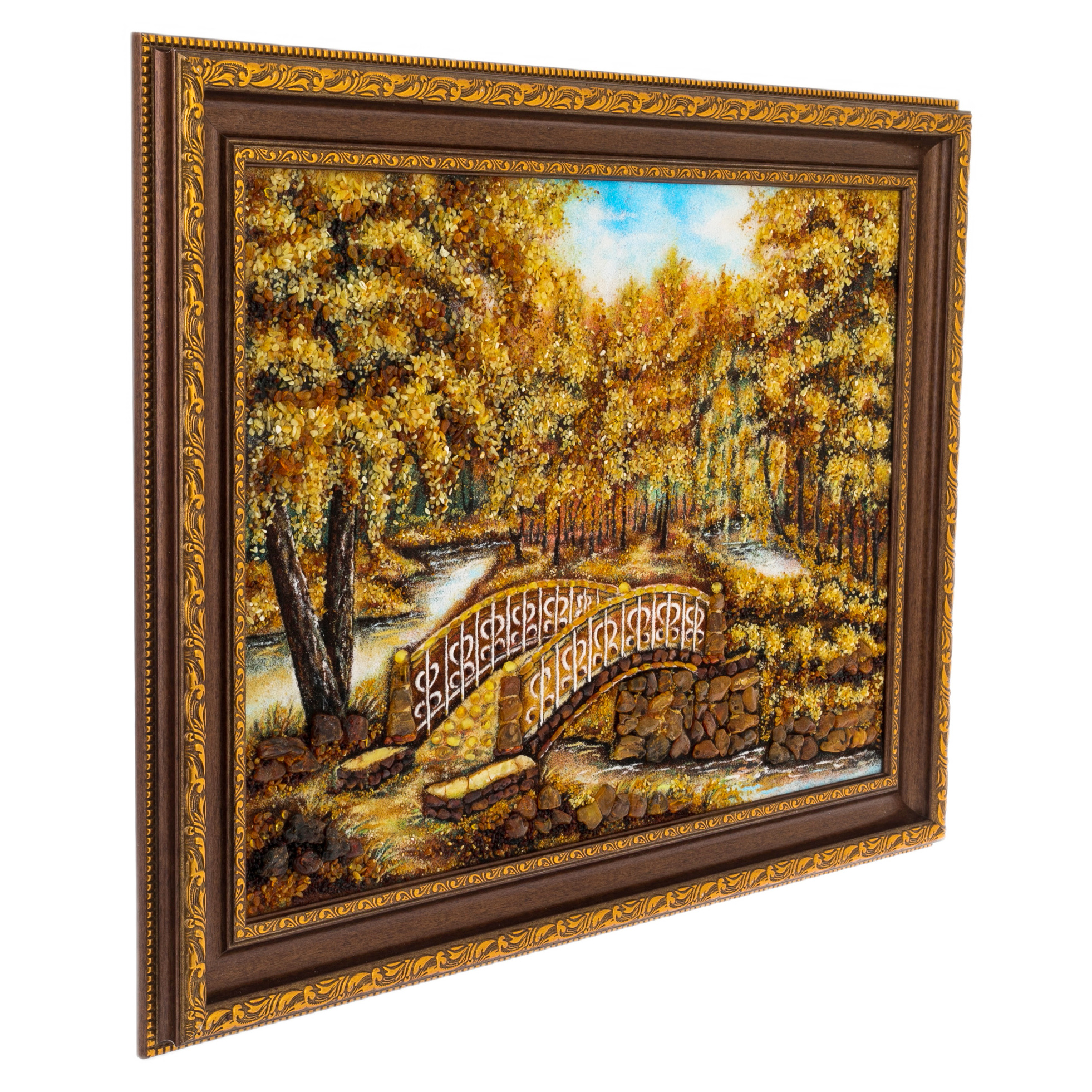 Мост, собранный из множества янтарных деталей, как мост к воспоминаниям, связывает прошлое и настоящее, соединяет два берега жизни, создавая неповторимое ощущение вечности момента. Камни под мостом, словно опоры вашей силы и внутреннего стержня, надёжны и величественны, как сама природа.