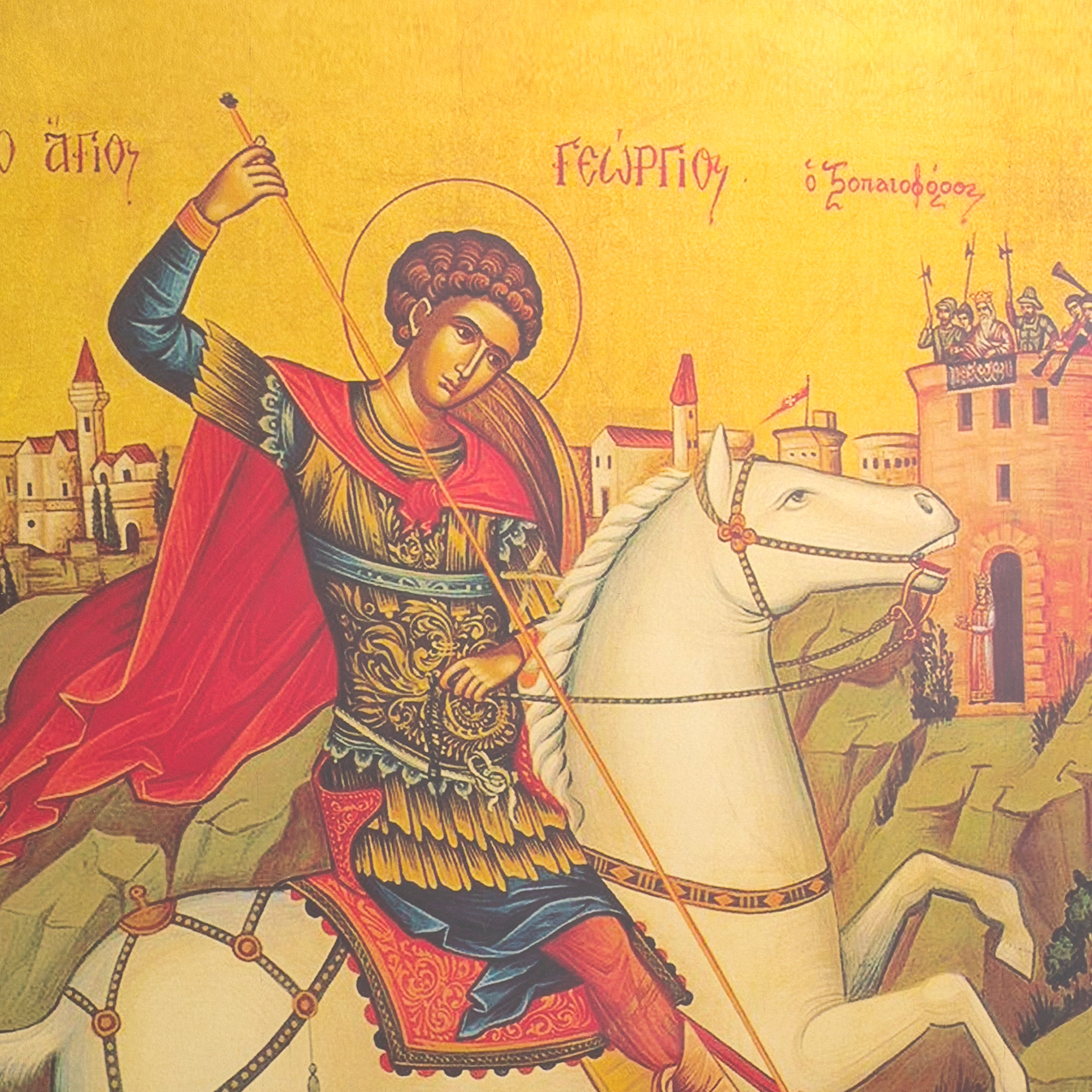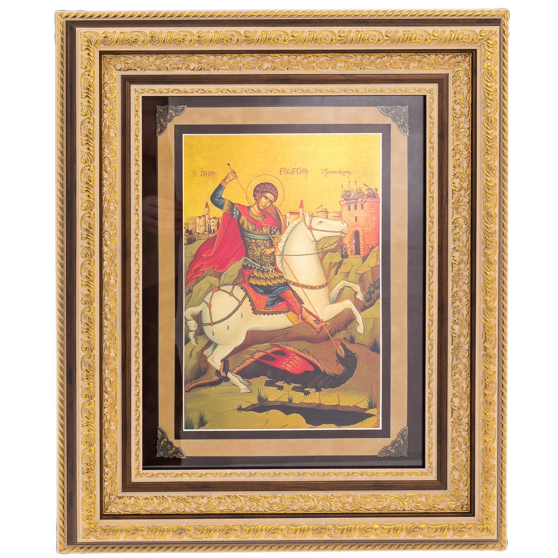 Картина на сусальном золоте "Георгий Победоносец" коричневый/бежевый