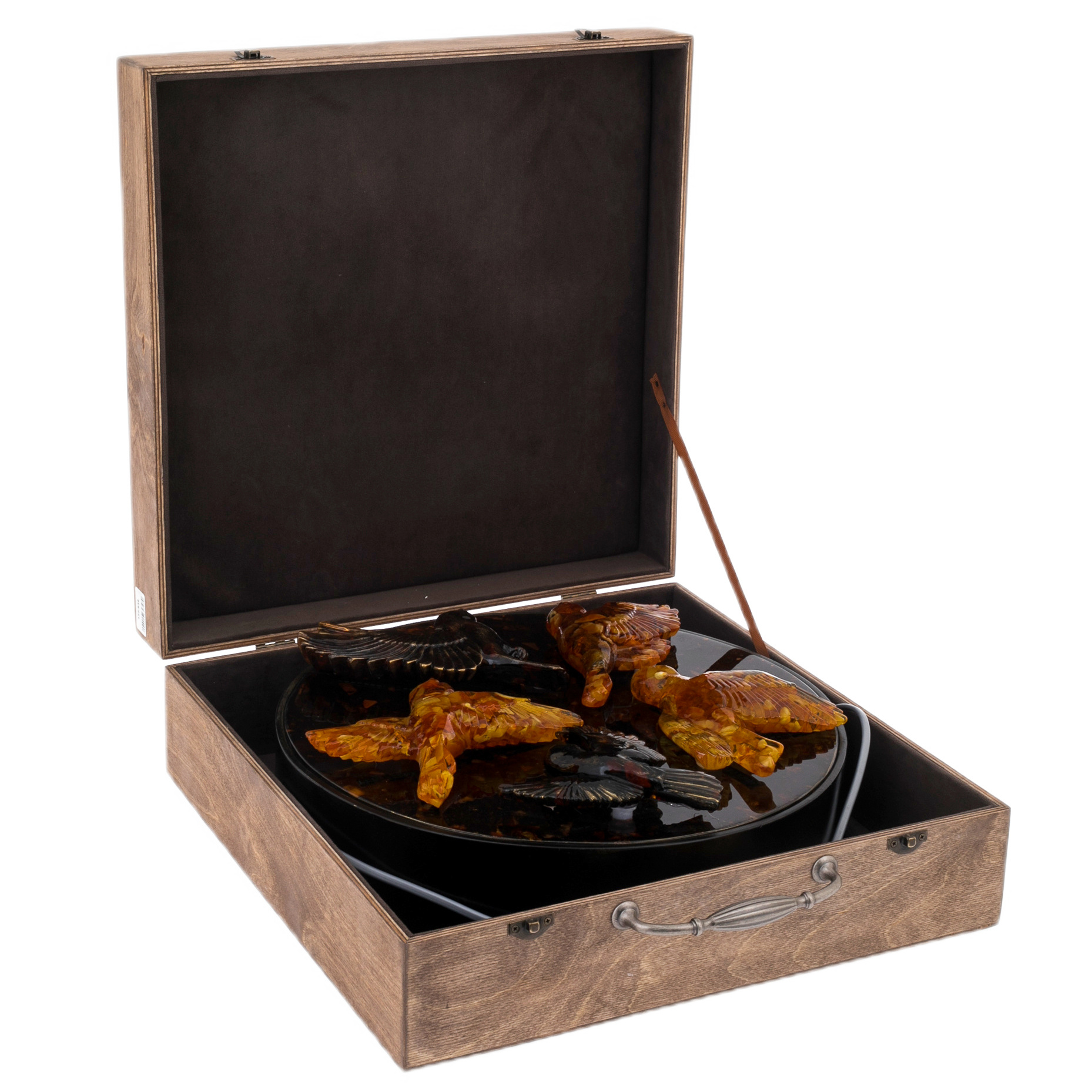 Панно предназначено для тех, кто умеет распознавать красоту вне времени и ценит эстетическую наполненность предметов интерьера. Подобный подарок не нуждается в объяснениях — он говорит сам за себя, восхищая проработкой деталей, чистотой линий и смысловой насыщенностью. Визуальный контраст, игра света и янтарной массы, тактильное совершенство — всё это создает предмет, являющийся одновременно украшением пространства и выражением статуса.