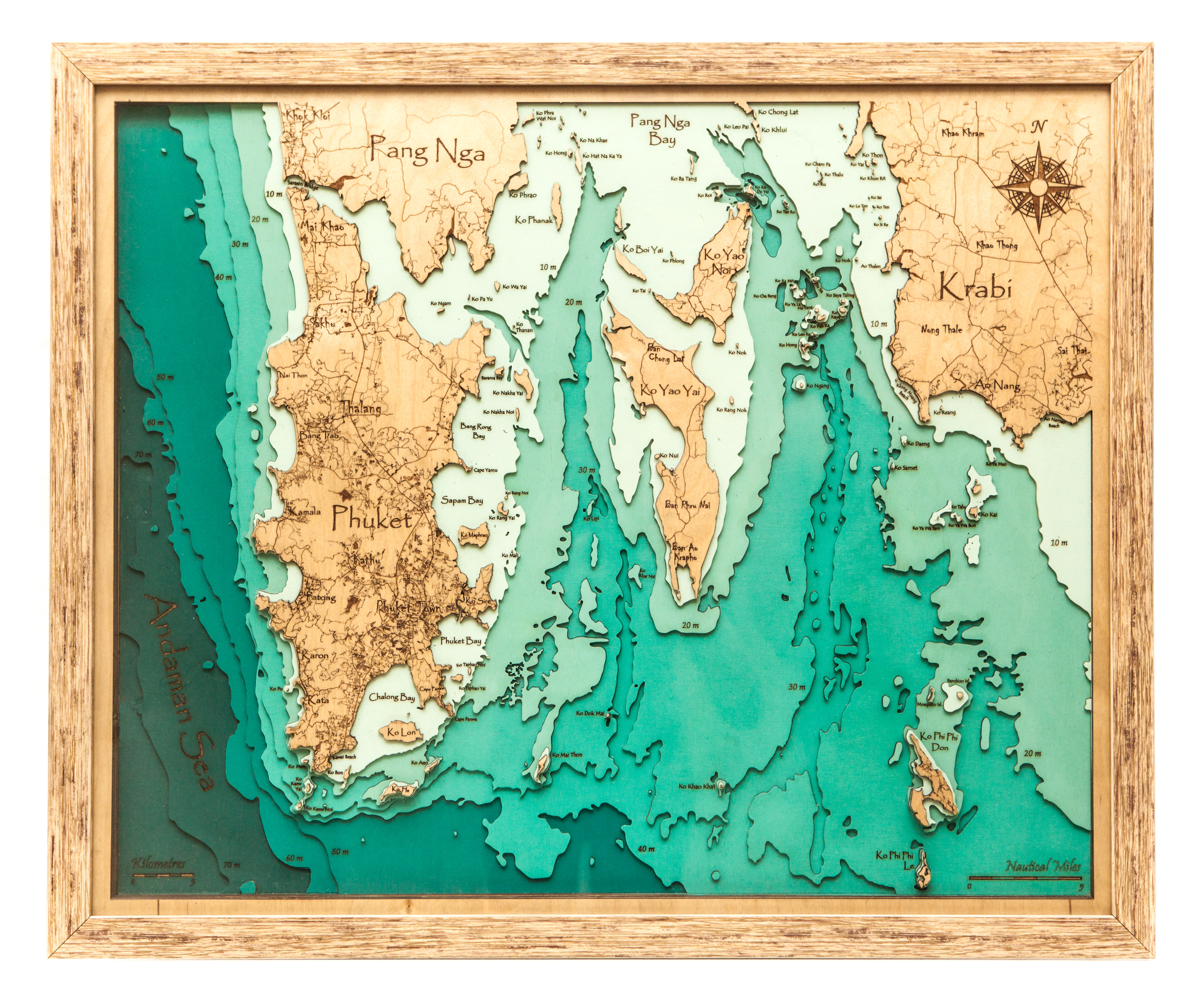 Карта деревянная многослойная "Карта о.Пхукет" на заказ