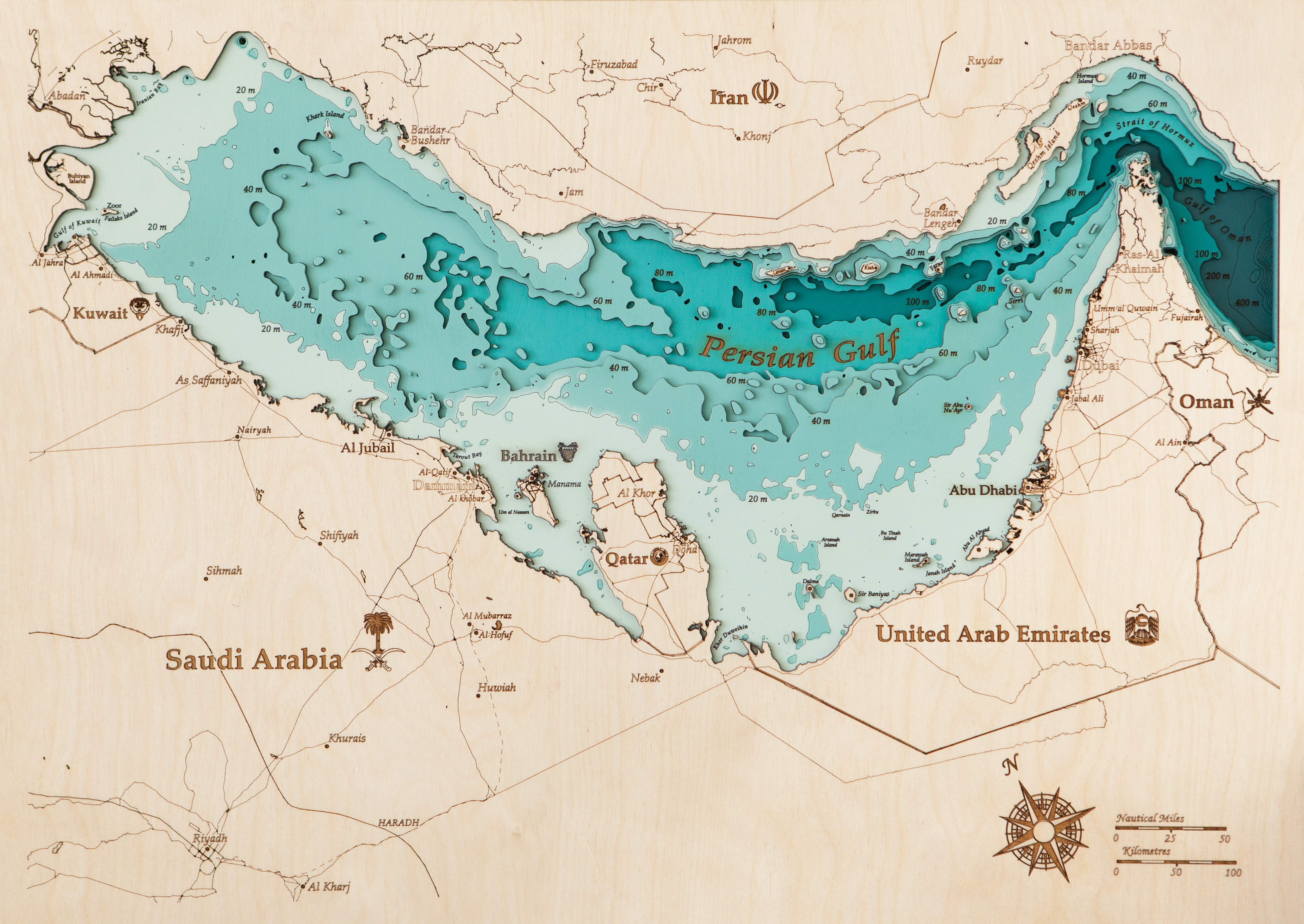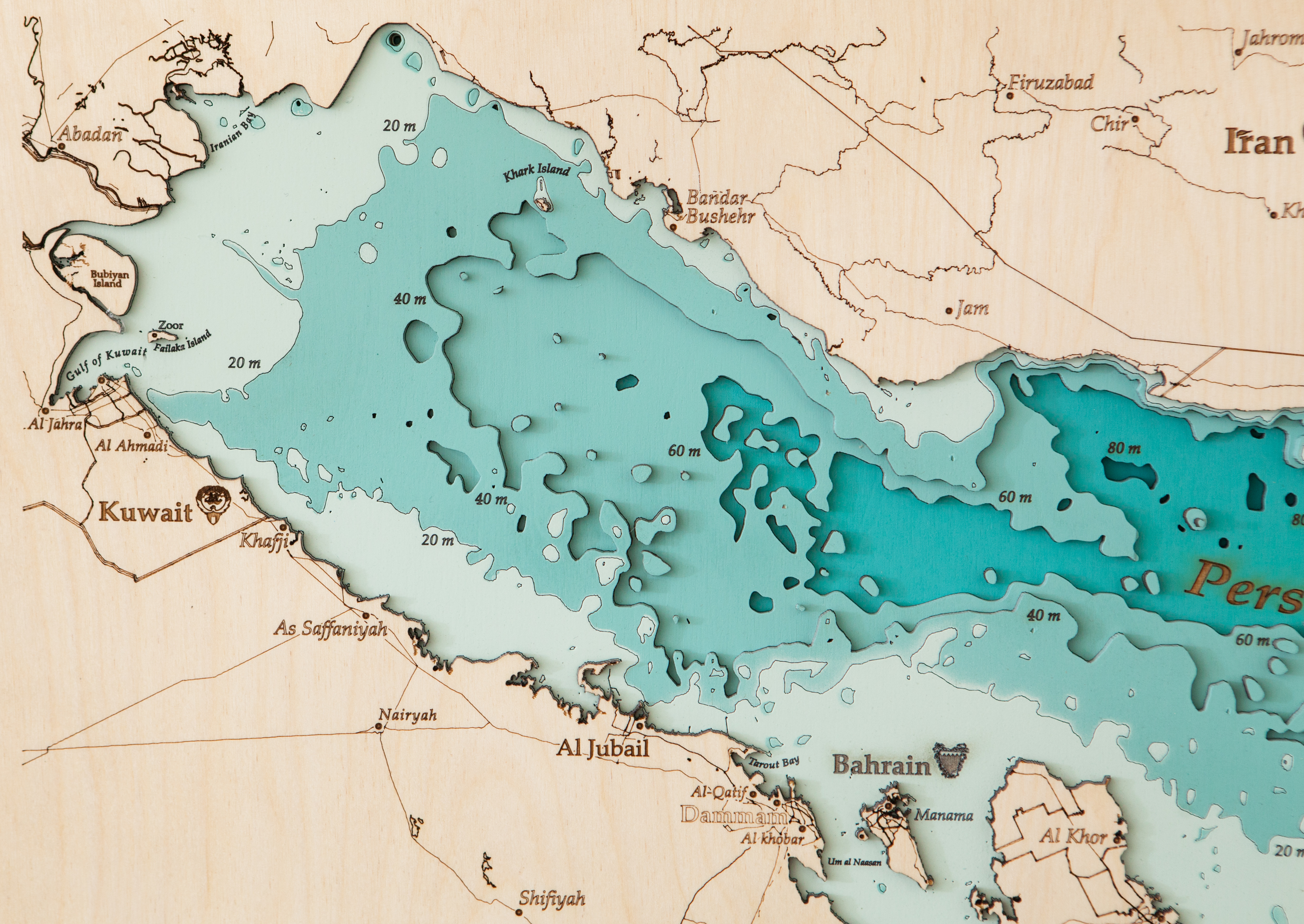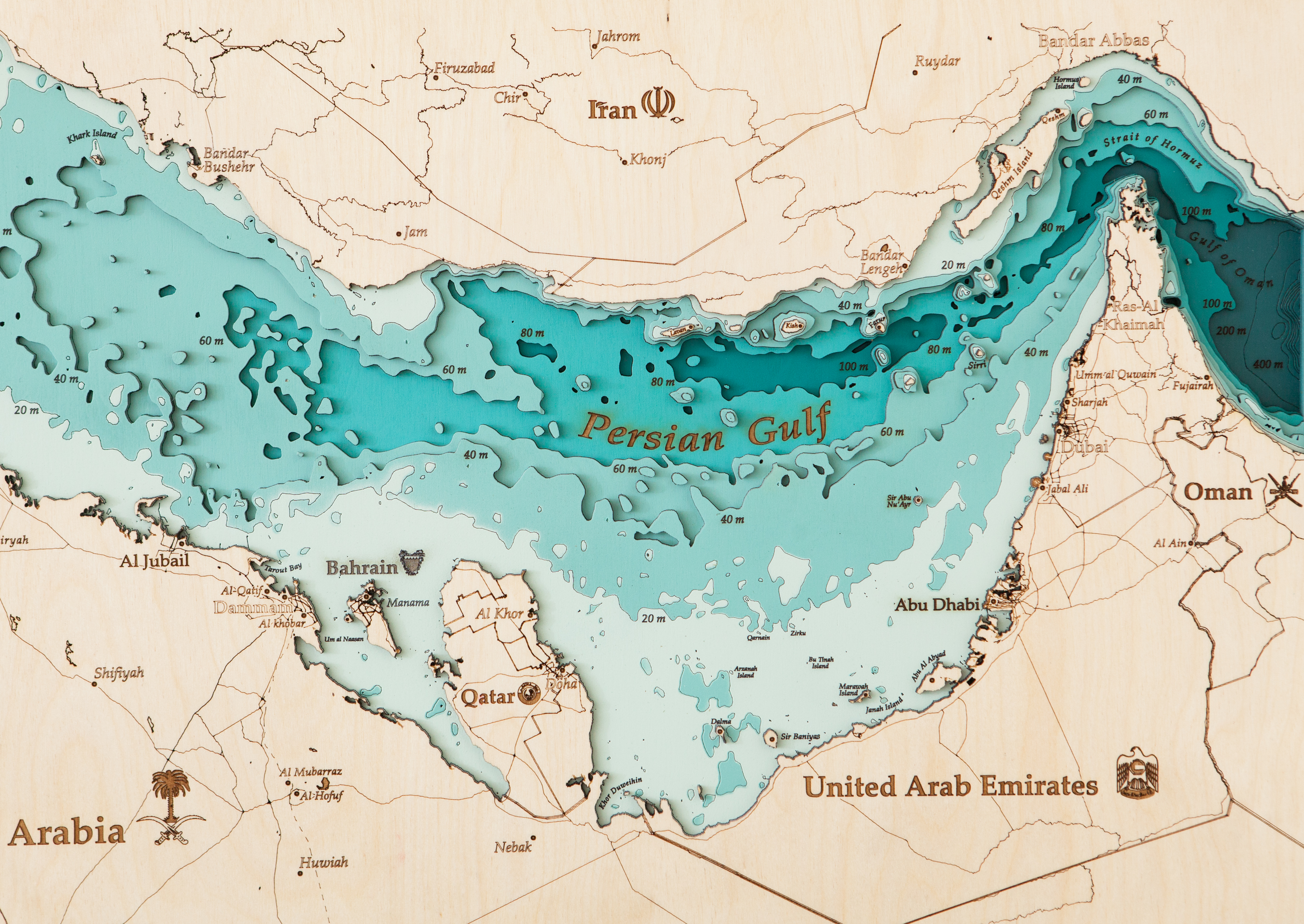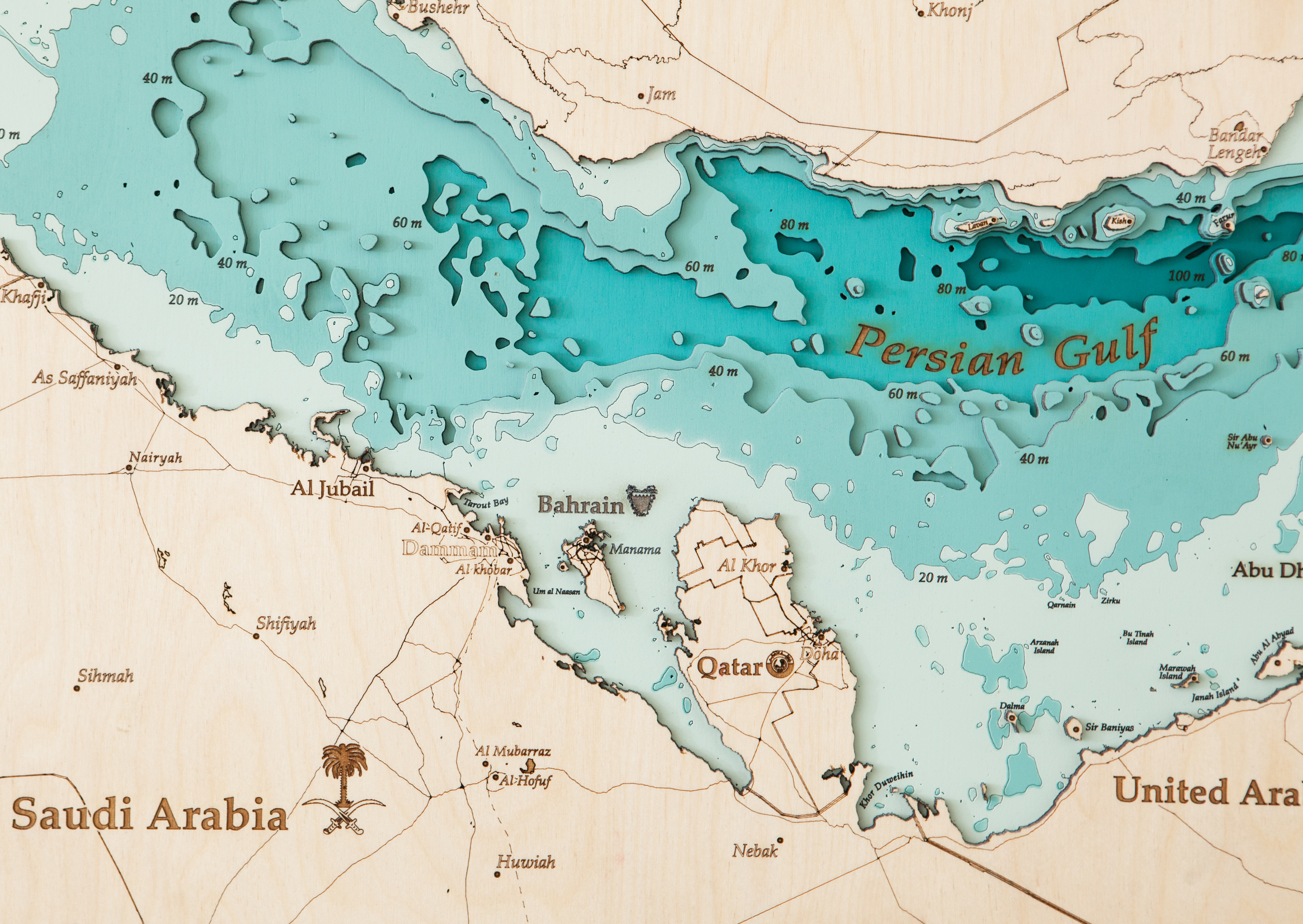 Карта деревянная многослойная "Карта Персидского залива" на заказ