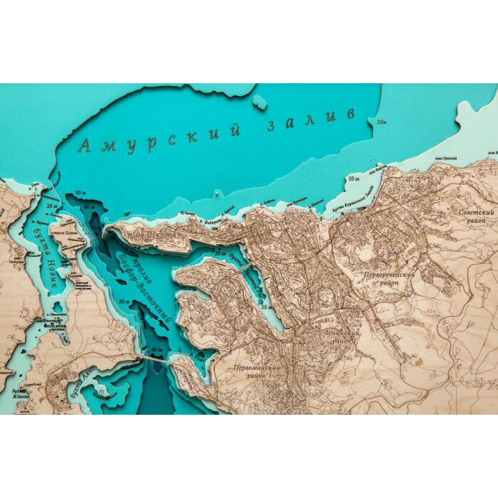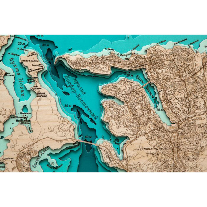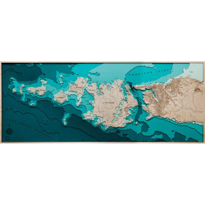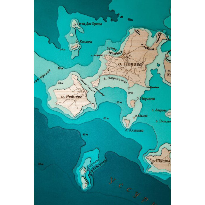 Карта острова залива Петра Великого из дерева, средняя, на заказ
