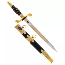 Кортик сувенирный "ФСБ" Златоуст Кортик сувенирный "ФСБ" Златоуст Великолепный сувенирный кортик "ФСБ" из Златоуста — это воплощение торжественной силы и исторического наследия, символ, который соединяет в себе власть, достоинство и величие. Эта драгоценная реликвия выполнена с использованием роскошного сочетания черного цвета и золотого покрытия, что придаёт изделию оттенок строгой элегантности. Клинок, украшенный изящной гравировкой, словно полотно, отражает величие службы и преданность делу. Нанесенная надпись "Федеральная служба безопасности Российской Федерации" подчеркивает значимость этой символики и напоминает о высокой миссии защиты Родины. Извивающийся орнамент золоченых деталей на клинке создает атмосферу величия, усиливая торжественность каждого элемента. Гарда кортика, с её филигранной гравировкой, представлена в виде раскрытых листьев, словно знамение стабильности и непоколебимости. Рукоять, обёрнутая в черную оплётку с позолоченными элементами, наделяет изделие особой выразительностью и комфортом, придавая ощущение уверенности и стойкости. Каждая деталь ножен поражает мастерством исполнения: золоченые крепления украшены геральдическими знаками, акцентируя внимание на исторической значимости кортика. На ножнах изображён герб, олицетворяющий власть и непреклонность, — словно напоминание о той силе, что скрыта в этом изящном оружии. Кольца для крепления придают изделию практичность и завершённость, создавая идеальный баланс между традицией и утончённым вкусом. Кортик "ФСБ" из Златоуста — не просто украшение; это символ чести и благородства, дань уважения к истории, что продолжает звучать в каждом узоре. Он станет прекрасным подарком для тех, кто понимает ценность силы и величия, кто живёт духом времени и стремится оставлять след в истории. Вы можете украсить сувенир оригинальным поздравлением или заказать рисунок по своему эскизу. Изделие хозяйственно-бытового назначения.