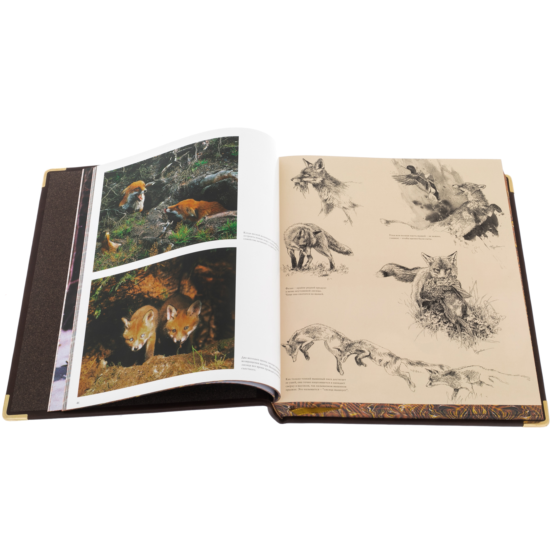 Материалы:кожаный переплет ручной работы, блинтовое тиснение, декоративная накладка, обрез блока с художественным оформлением, дизайнерская бумага, составной форзац, каптал, шелковое ляссе, в комплекте подарочный кожаный короб.