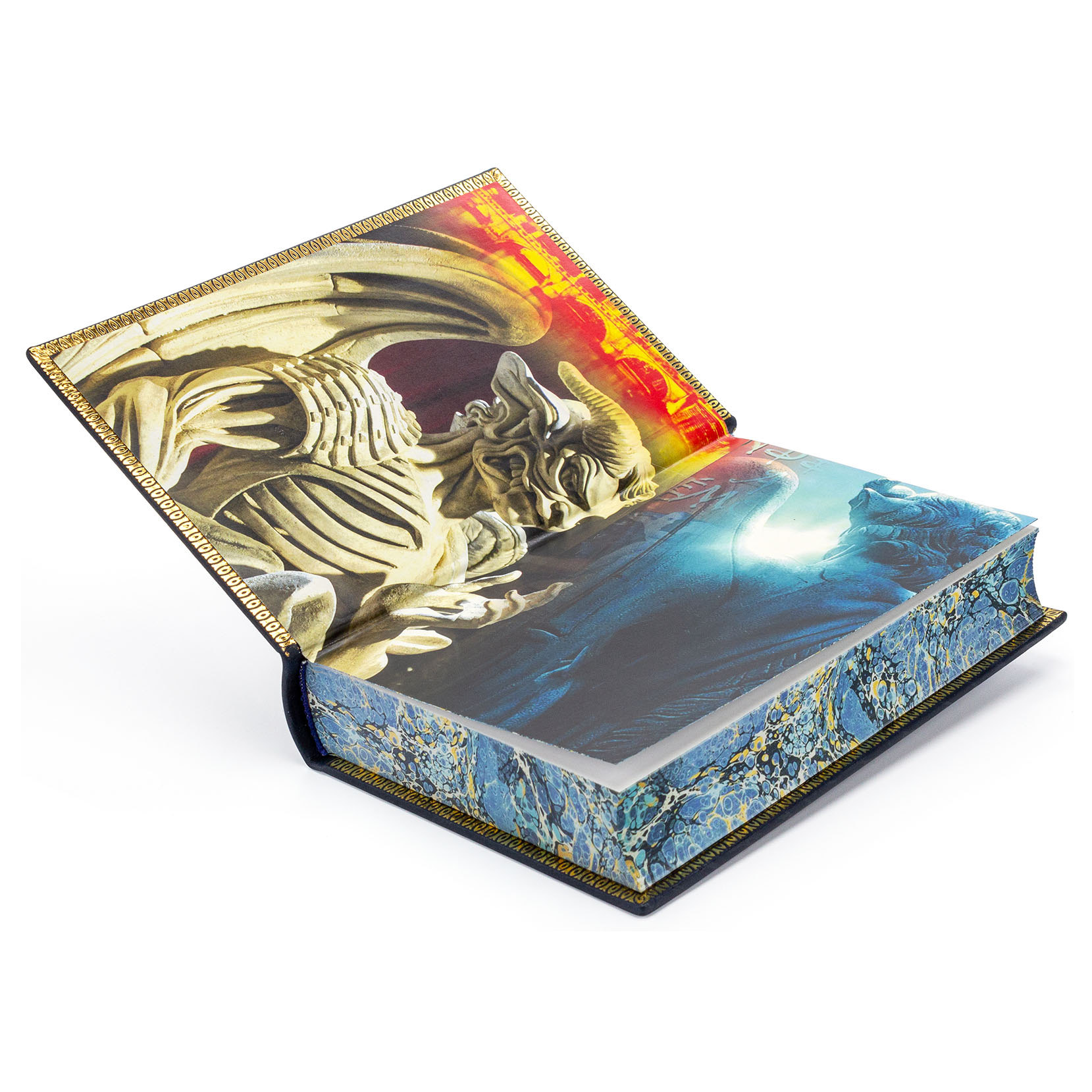 Особенности оформления:цельнокожаный переплет ручной работы; дизайн прекрасно сочетает в себе серебрянное и блинтовое тиснение, крашенный в тон переплетного материала обрез; офсетная бумага, бархат.