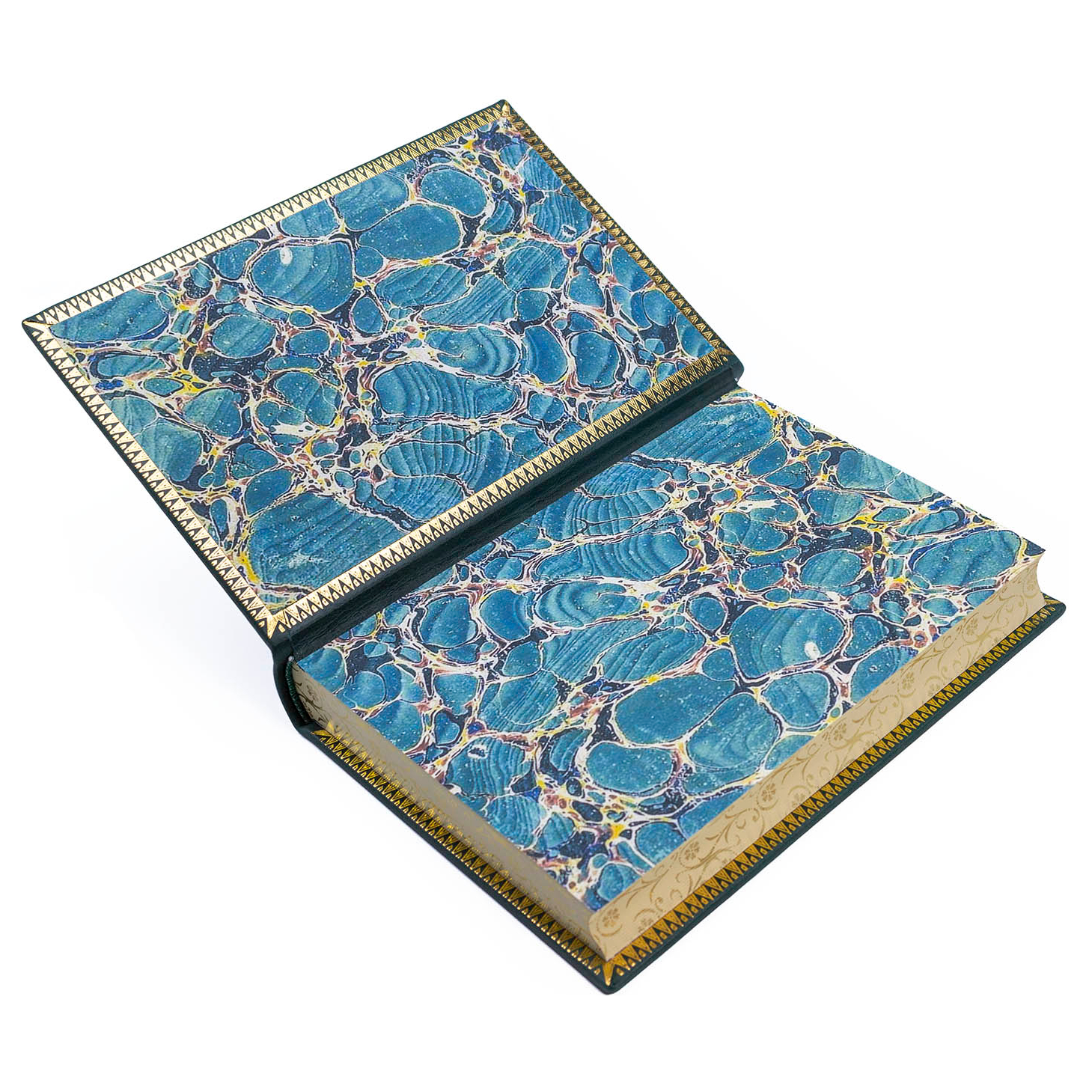 Особенности оформления: полностью ручная работа; обрезы страниц отшлифованы с нанесением золотого орнамента.