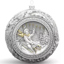 Серебряный елочный шар "Весёлые салазки" с позолотой Серебряный елочный шар "Весёлые салазки" с позолотой Ёлочная игрушка – обязательный атрибут всеми любимого праздника. Далёкие предки развешивали на деревьях в лесу яблоки, орехи и всё, чем, по их мнению, можно было задобрить духов отвечающих за изобилие и благополучие наступающего года. Сейчас, украшая ёлку, мы демонстрируем прежде всего свои собственные достижения: достаток, утончённый вкус и конечно же бережно хранимую семейную историю. Именно поэтому эксклюзивные авторские игрушки ценятся особенно. Расписные шары, фарфоровые статуэтки, тряпичные куклы, декоративные свечи, золочёные подвески и хрустальные колокольца – разновидностей ёлочных игрушек, как и исторических техник их изготовления существует великое множество. Каждый такой исполненный искусным мастером вручную шедевр великолепен и неповторим. Преподнесённый в сувенир он станет достойным экспонатом новогодней коллекции ценностей и напоминанием о ваших добрых чувствах.