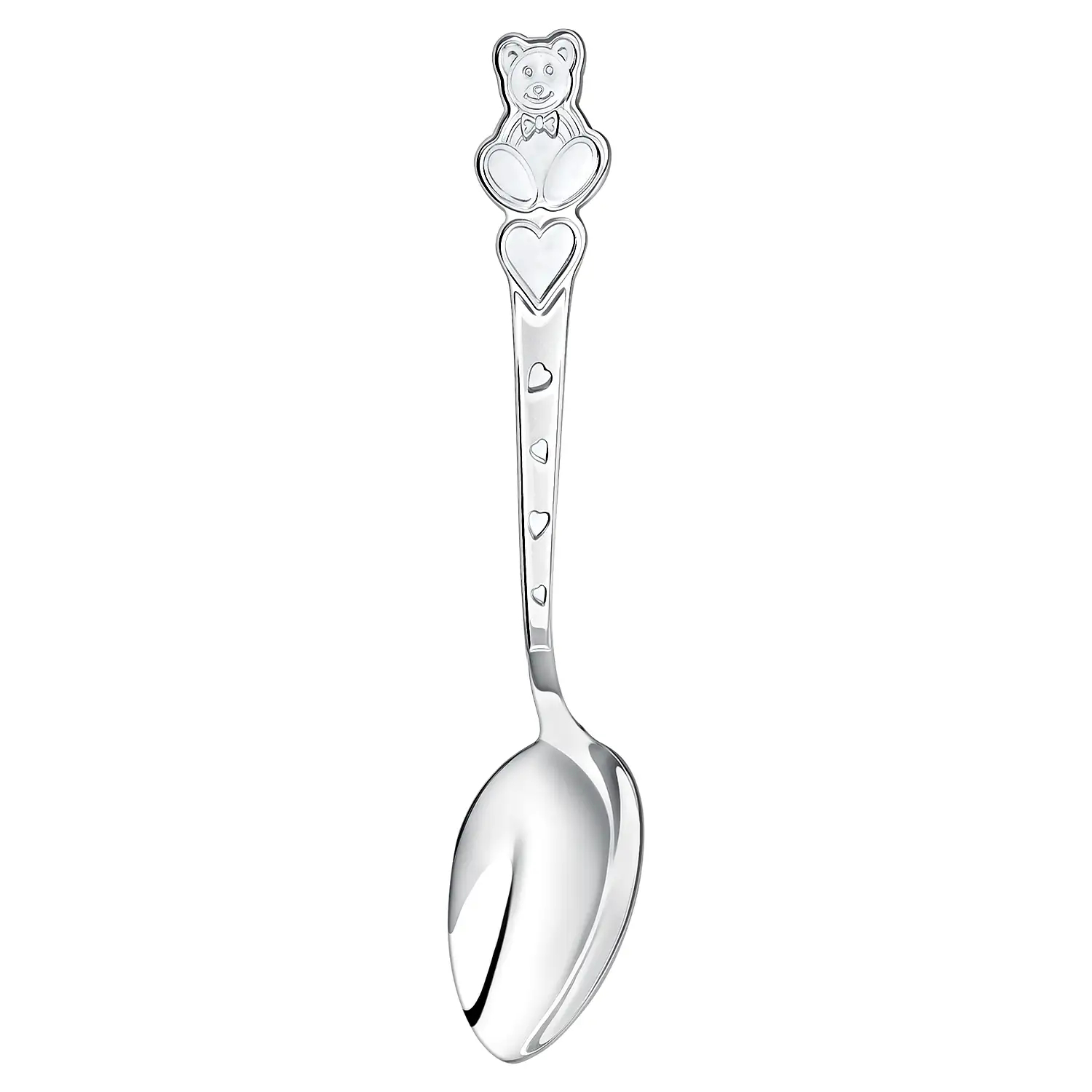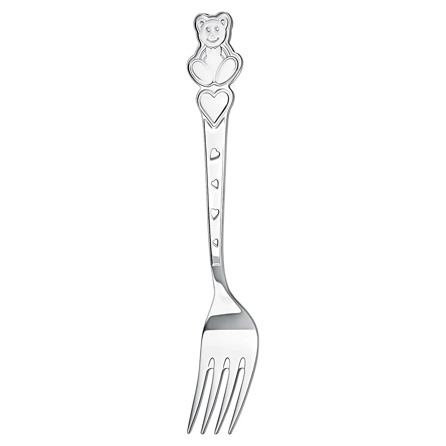 Набор детских серебряных столовых приборов КД "Мишка с сердечками": вилка и ложка, на 1 персону