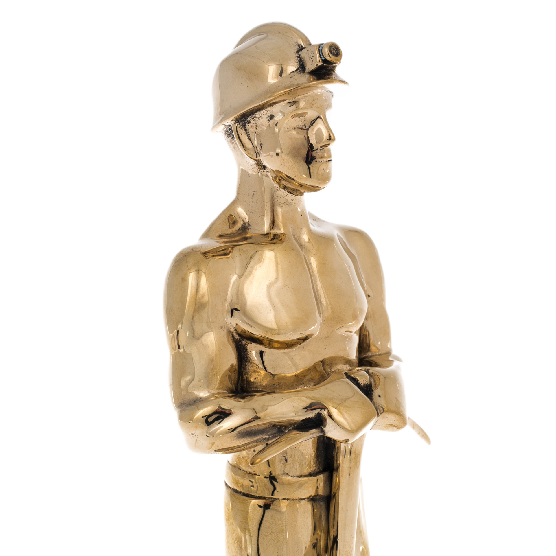 Статуэтка, выполненная с высочайшей степенью мастерства, изображает шахтёра, твёрдо стоящего на своём постаменте. Его гордая осанка и уверенный взгляд олицетворяют дух лидера, человека, способного выдержать любые испытания. Шахтёрский шлем с фонарём подчёркивает внимание к деталям, а инструмент в руках напоминает о силе труда, прокладывающего путь в самые недра земли.