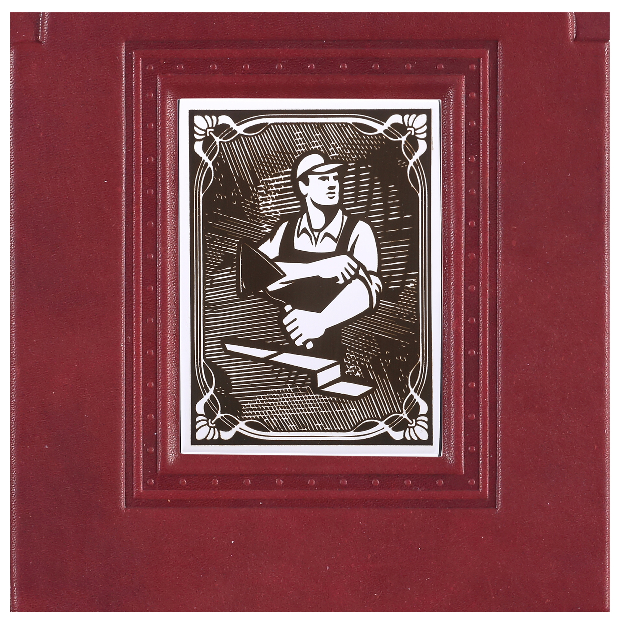 Ежедневник А5в кожаном переплете "Строителю-4" с накладкой покрытой никелем