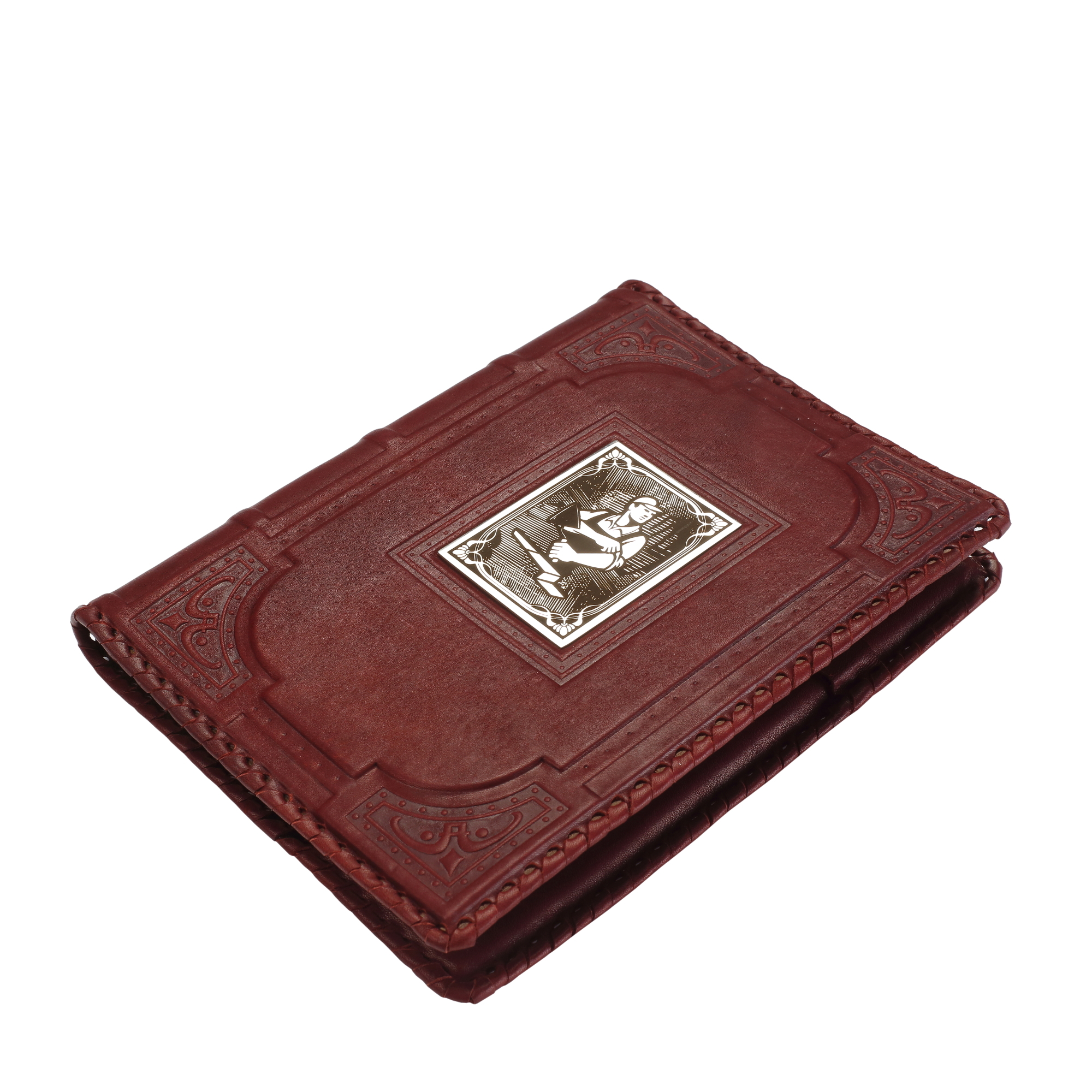 Оформление:кожаная оплетка по периметру изделия, латунная накладка, художественное тиснение.