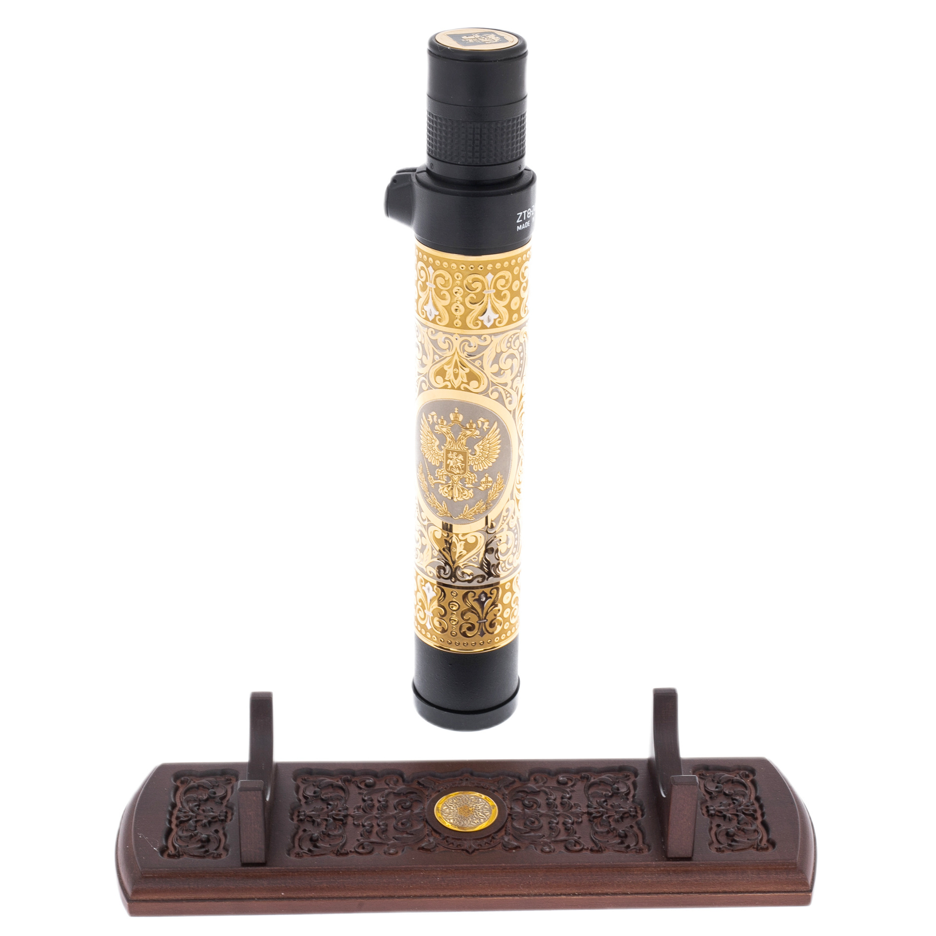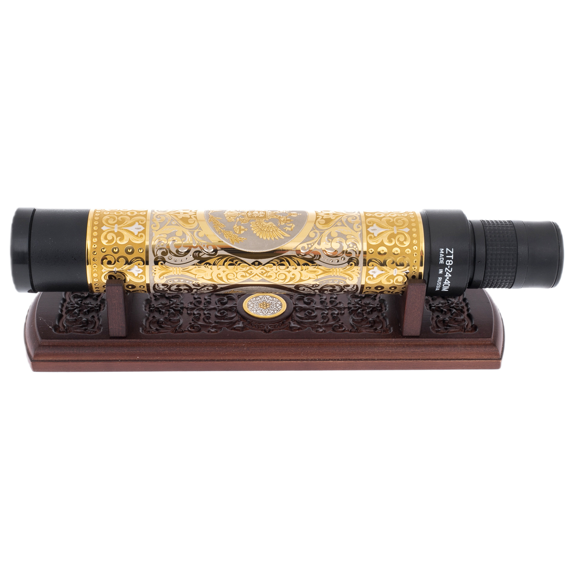 Труба подзорная "Герб РФ" на резной подставке, Златоуст
