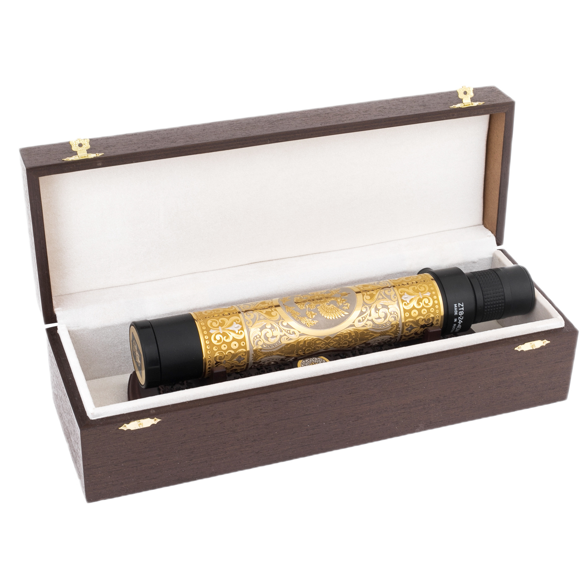 Сила власти — в умении видеть дальше, чем остальные. Этот подзорный монокуляр заключает в себе символику стратегического превосходства, недосягаемую для обывателей ясность видения и контроль над горизонтом будущего. Здесь нет места случайности: каждая деталь, от великолепного златоустовского узора до точной оптики, создана для тех, кто привык управлять, а не следовать.