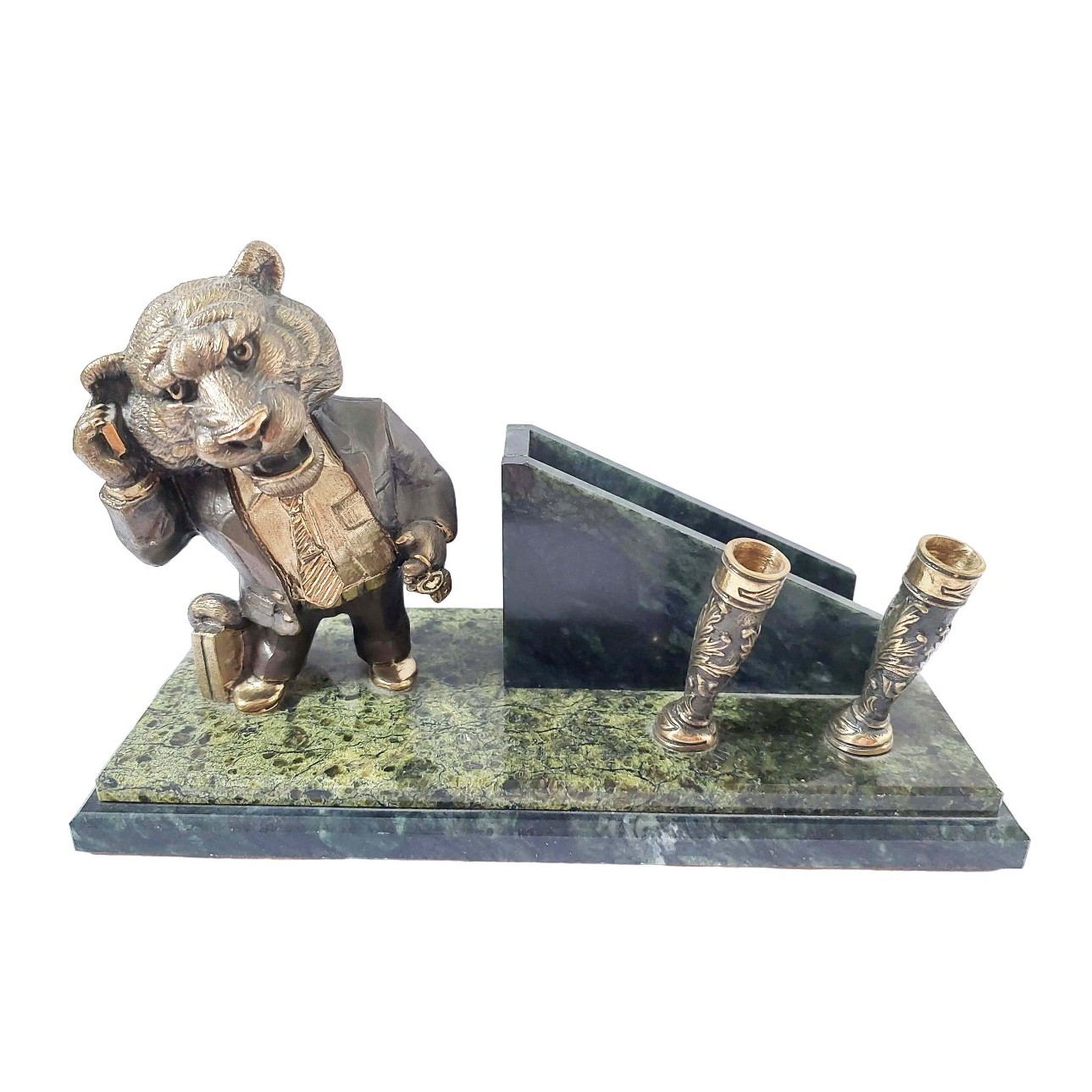Настольный набор из бронзы и змеевика "Тигр-бизнесмен"