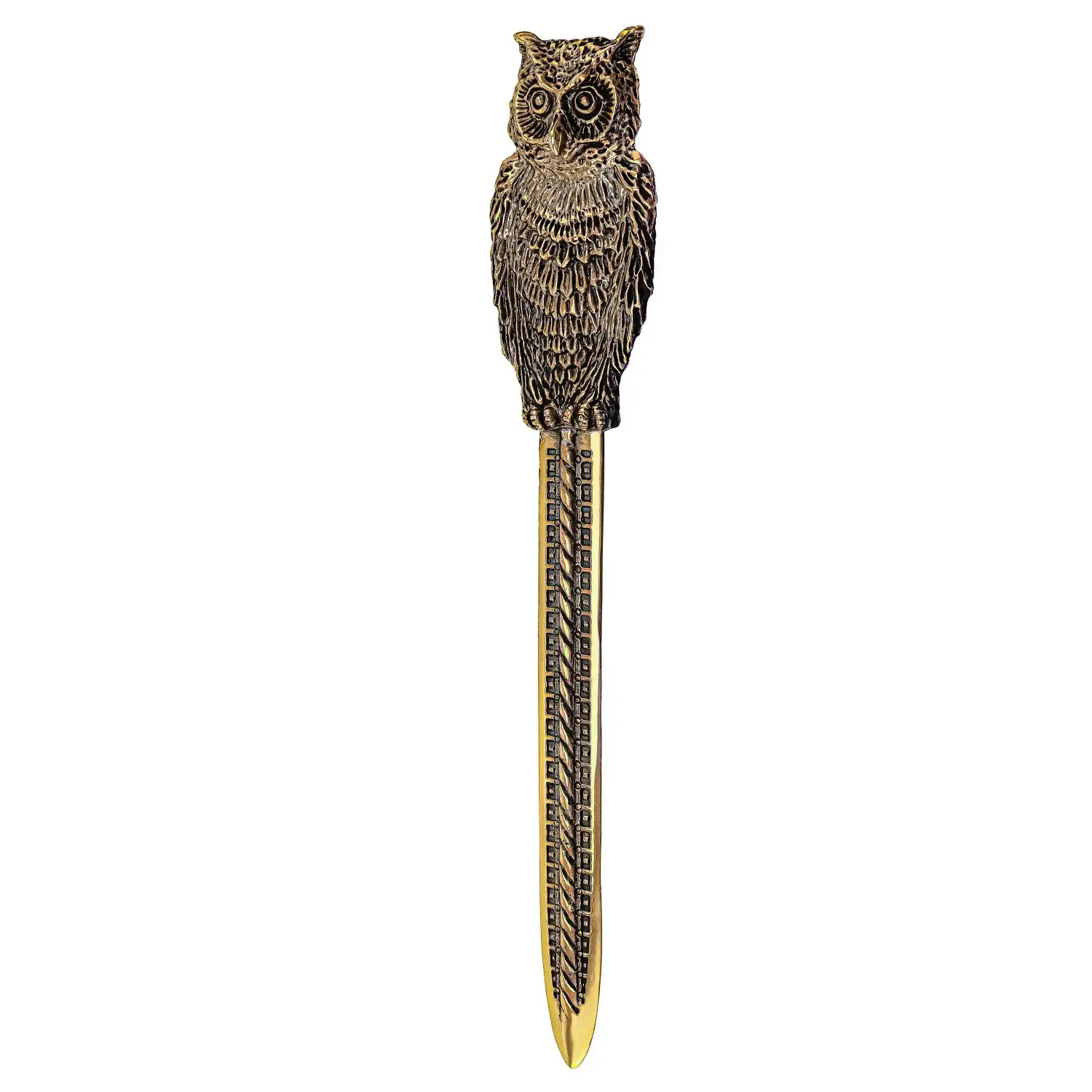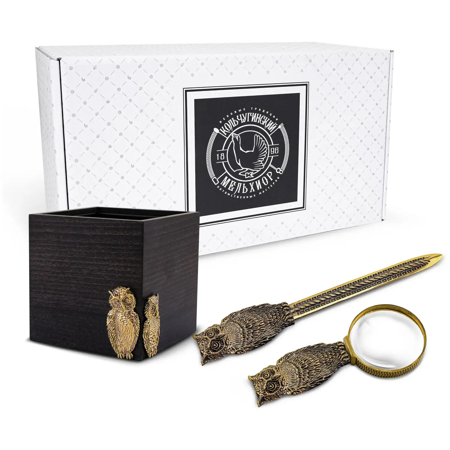 Латунный набор канцелярский "Сова" с чернением, 3 предмета в коробке
