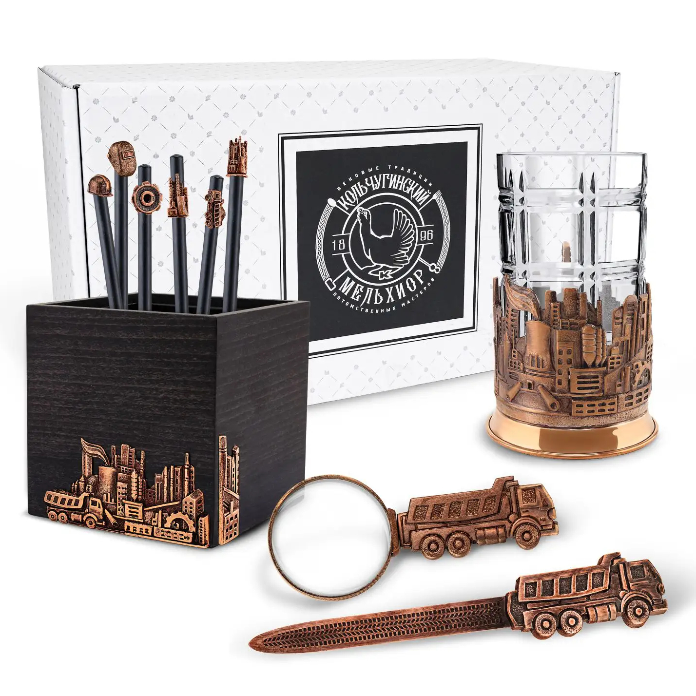 Медный набор канцелярский "Индустриальный" с чернением 11 предметов в коробке