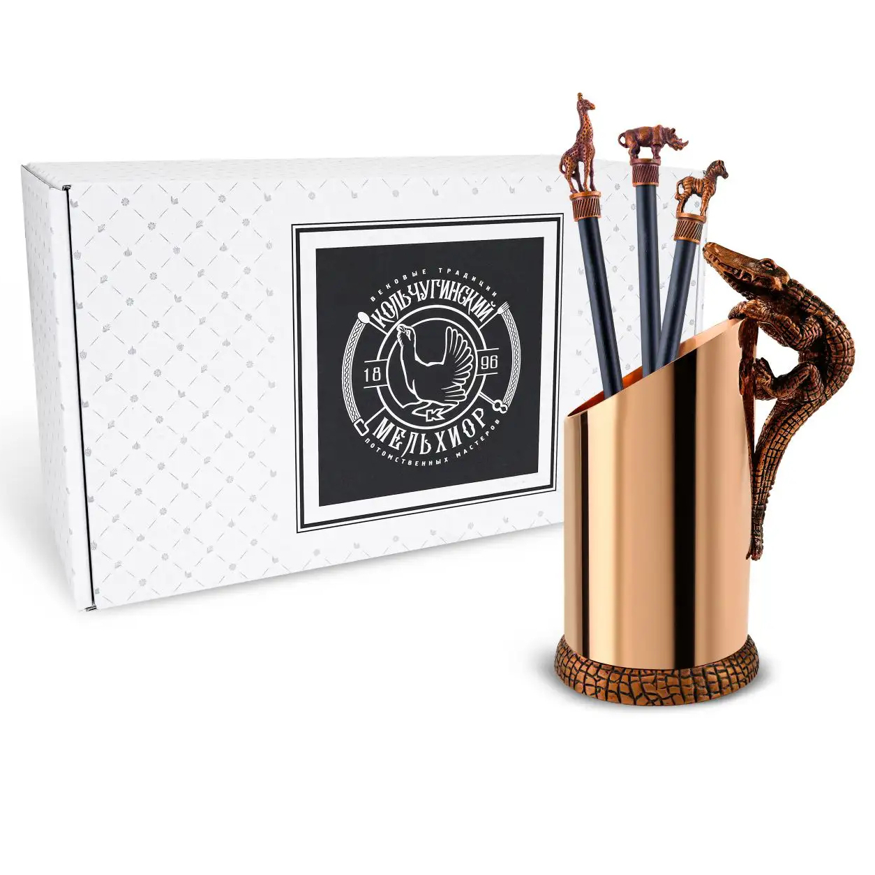 Медный набор канцелярский "Сафари" с чернением, 4 предмета: карандашница, 3 карандаша