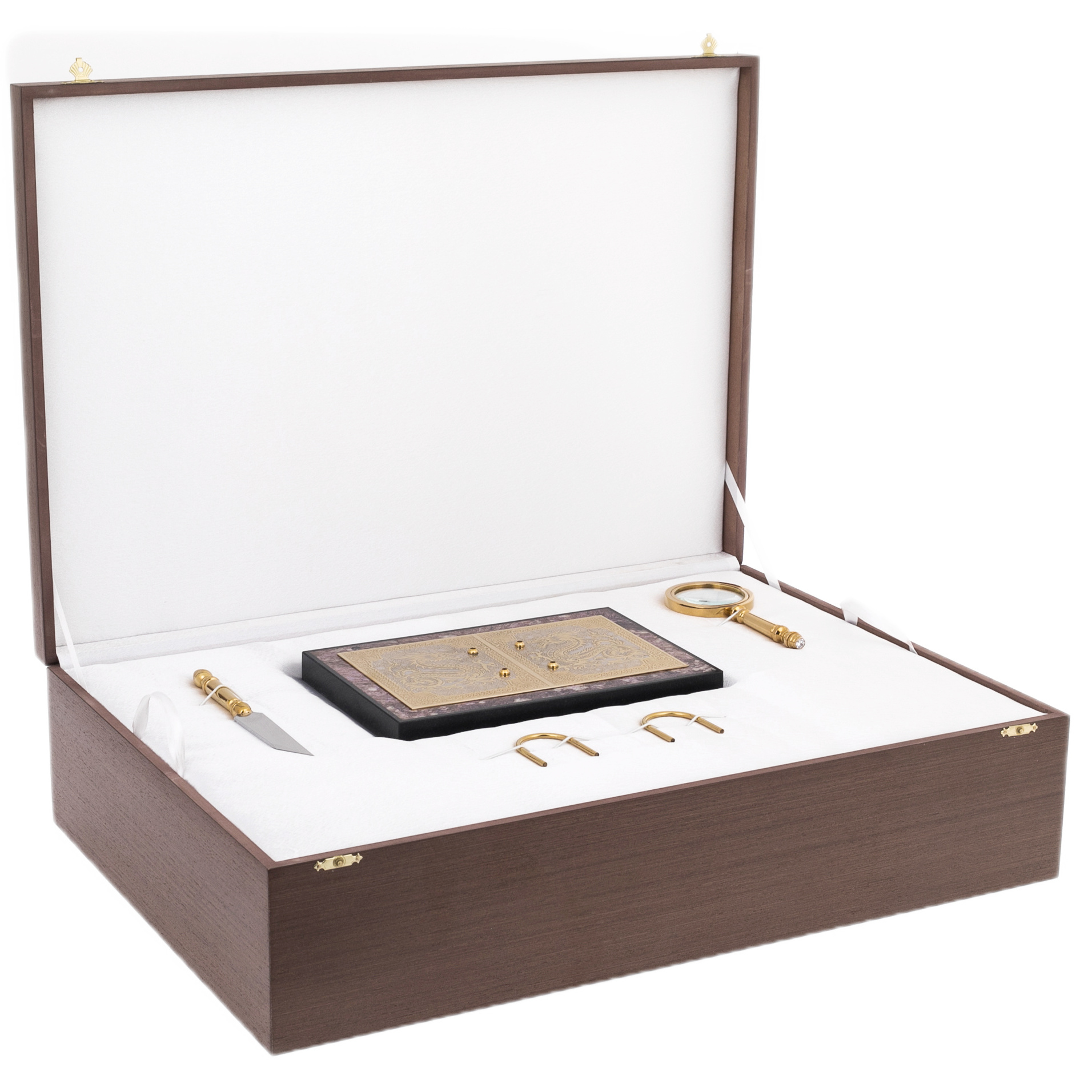 Этот набор — не просто рабочий инструмент, но и мощное заявление о характере его владельца. Каждая его деталь словно говорит: здесь сидит человек, способный направлять судьбы, строить империи и создавать историю.