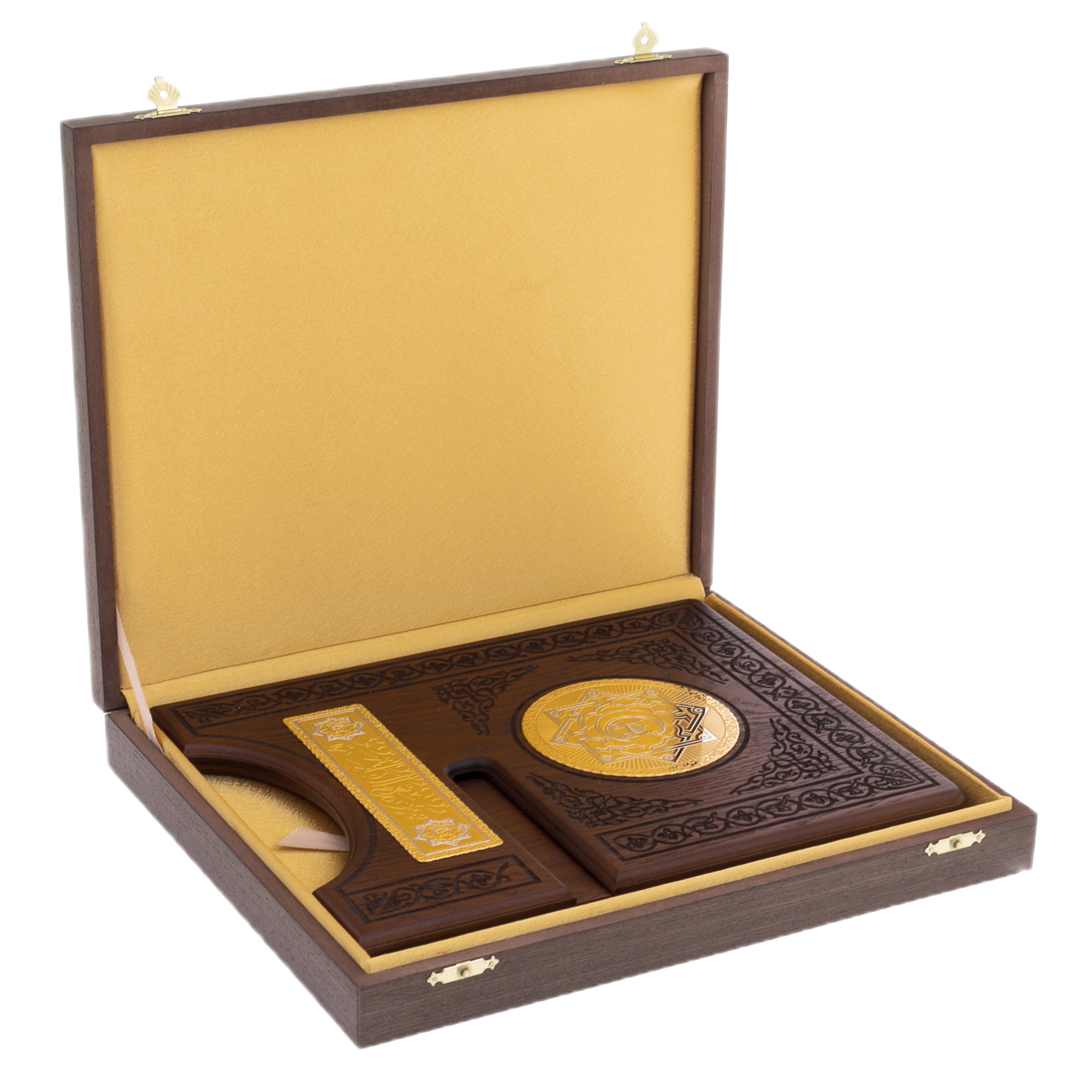 Подставка для Корана «Путь мудрости» — это изысканное изделие, выполненное из ценных пород дерева с применением традиционной златоустовской техники. Форма и конструкция позволяют надежно удерживать священную книгу, обеспечивая удобство чтения и хранения. Декор из тонкой гравировки и позолоты подчёркивает сакральное значение подставки, делая её достойным подарком для ценителей исламской культуры и религиозных традиций.