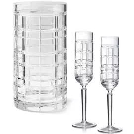 Ralph Lauren Home Набор бокалов для шампанского "Hudson" с вазой, на 2 персоны Набор бокалов для шампанского "Hudson" с вазой, на 2 персоны Процесс наслаждения шампанским – это не просто момент, а изысканный ритуал, в котором важна каждая деталь. Hudson от Ralph Lauren Home — это набор бокалов, воплощающий эстетику и стиль, присущие культовому американскому бренду. Утонченная форма, оригинальная гравировка и изысканные линии придают бокалам исключительный характер, а их правильная форма позволяет в полной мере раскрыть аромат и вкус благородного напитка. Дизайн бокалов вдохновлён знаменитой клеткой «тартан», символизирующей традиции и элегантность. Ralph Lauren Home превращает предметы сервировки в объекты искусства, сочетающие классику и современный взгляд на эстетику. Дополняет набор хрустальная ваза Hudson, созданная в том же фирменном стиле. Пространство становится домом, когда оно наполнено вещами, которые мы любим. Оригинальная ваза не только подчёркивает изысканный вкус владельца, но и создаёт атмосферу уюта, дополняя интерьер легкостью и гармонией. Она прекрасно сочетается с любым стилем, подчеркивая элегантность любого пространства. Набор Hudson — это не просто аксессуары для дома, а выражение утонченного вкуса и стремления к совершенству, где каждая деталь отражает искусство жизни от Ralph Lauren Home.
