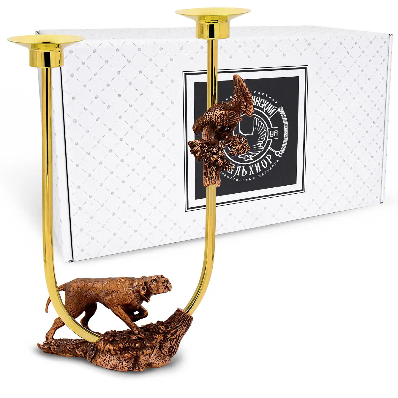 Латунный подсвечник "Пойнтер" с медным литым элементом и чернением
