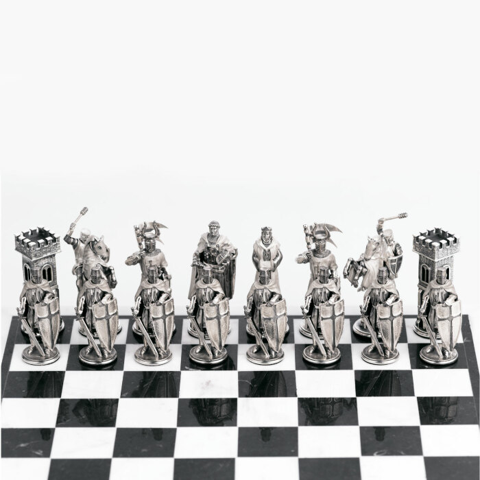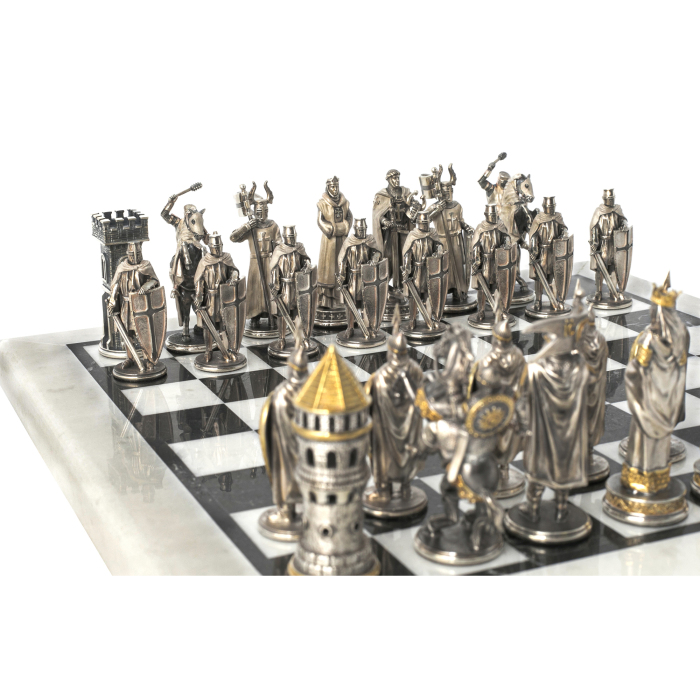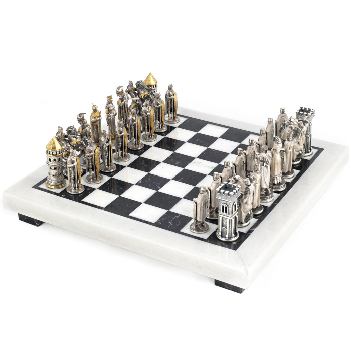 Шахматы из мрамора и серебра "Ледовое побоище"