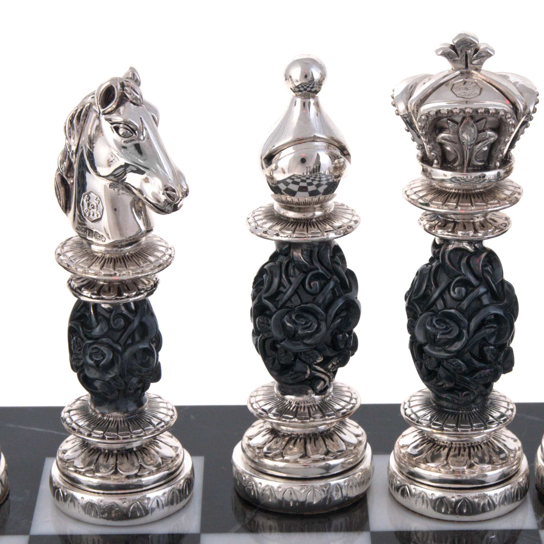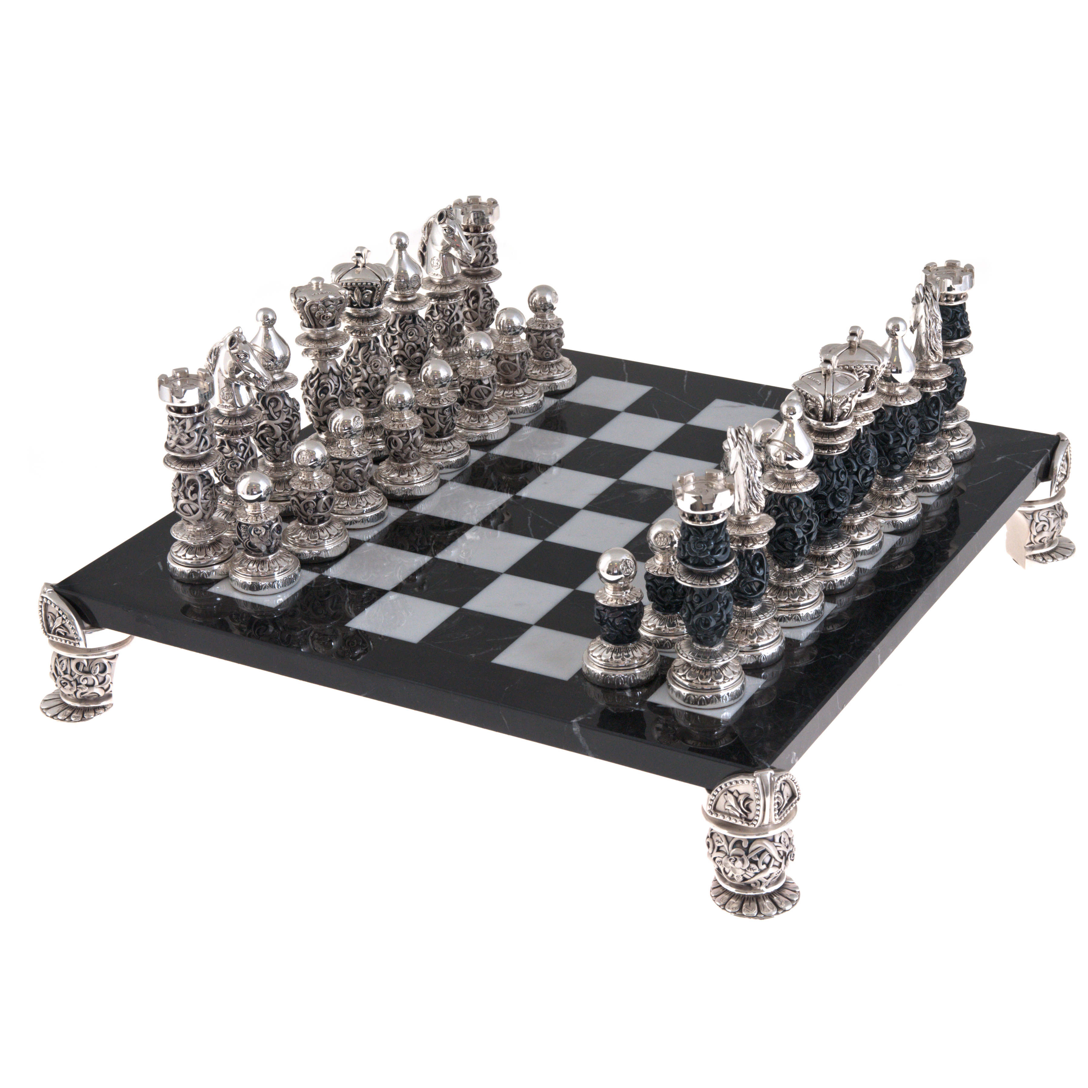 Шахматный набор из мрамора и стали с чернением "Барокко"