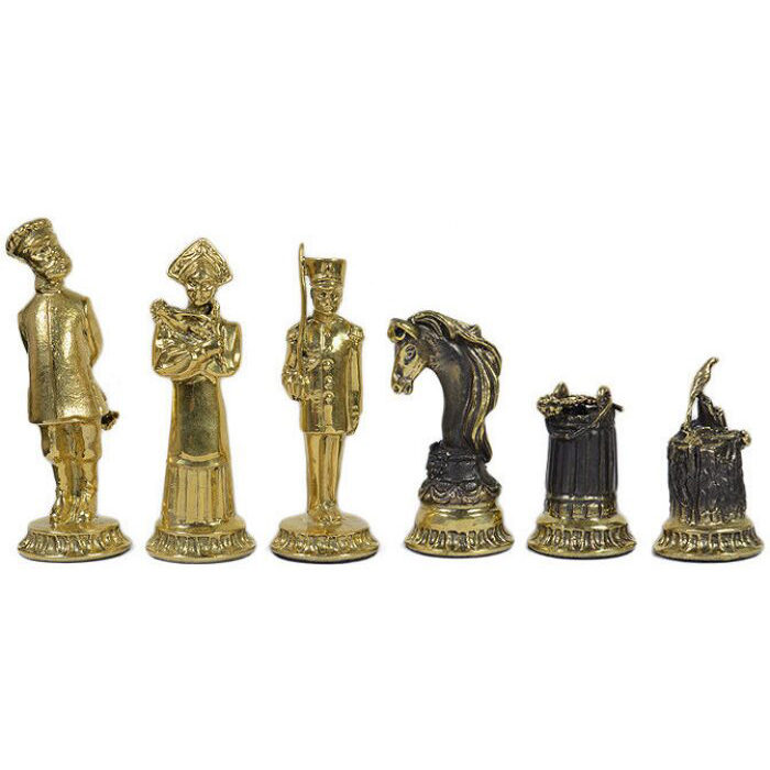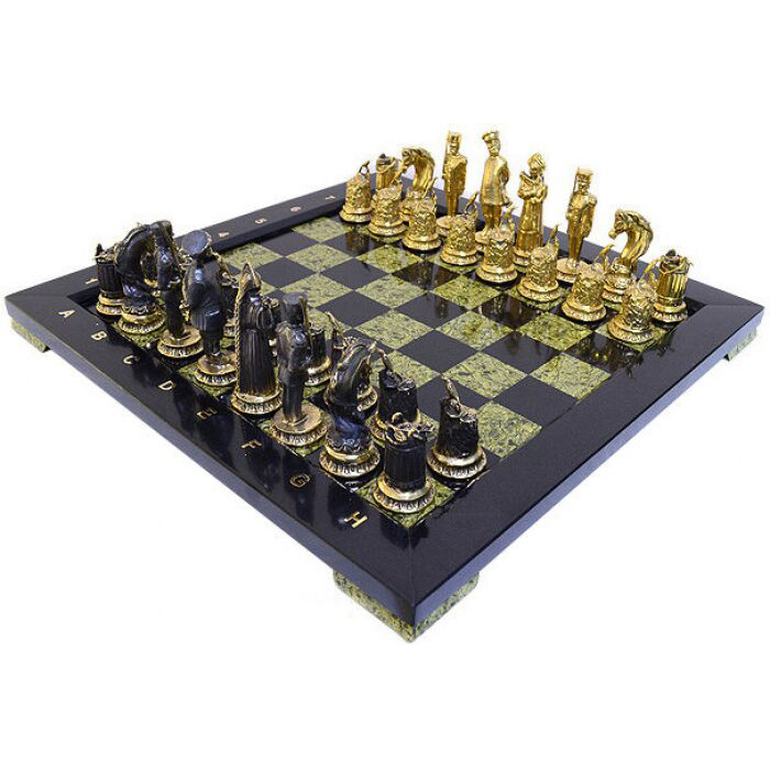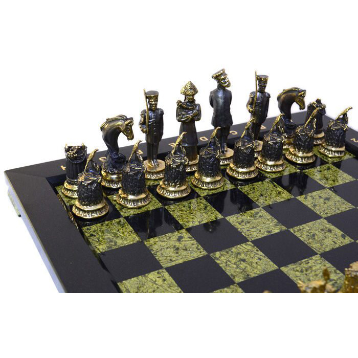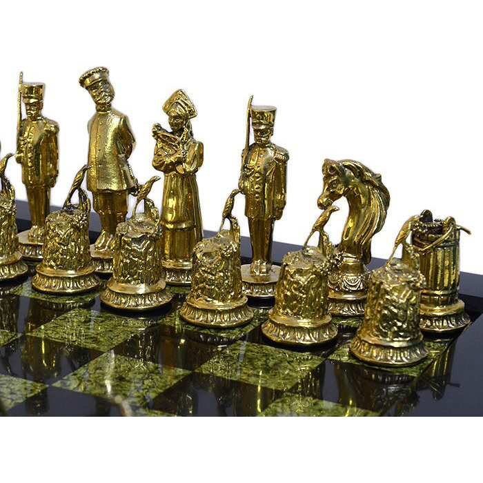 Шахматы из змеевика и бронзы "Деревенские"