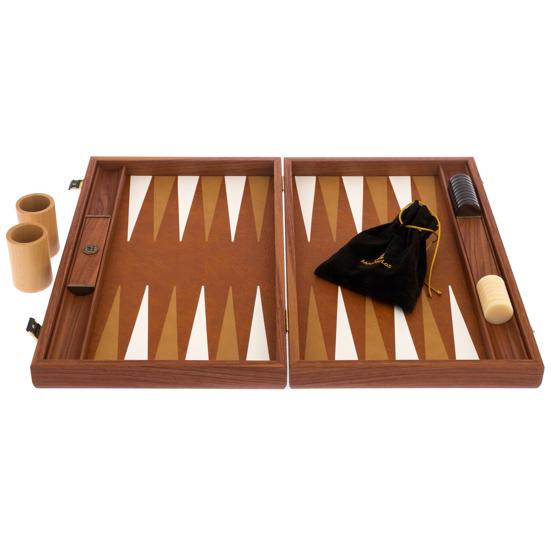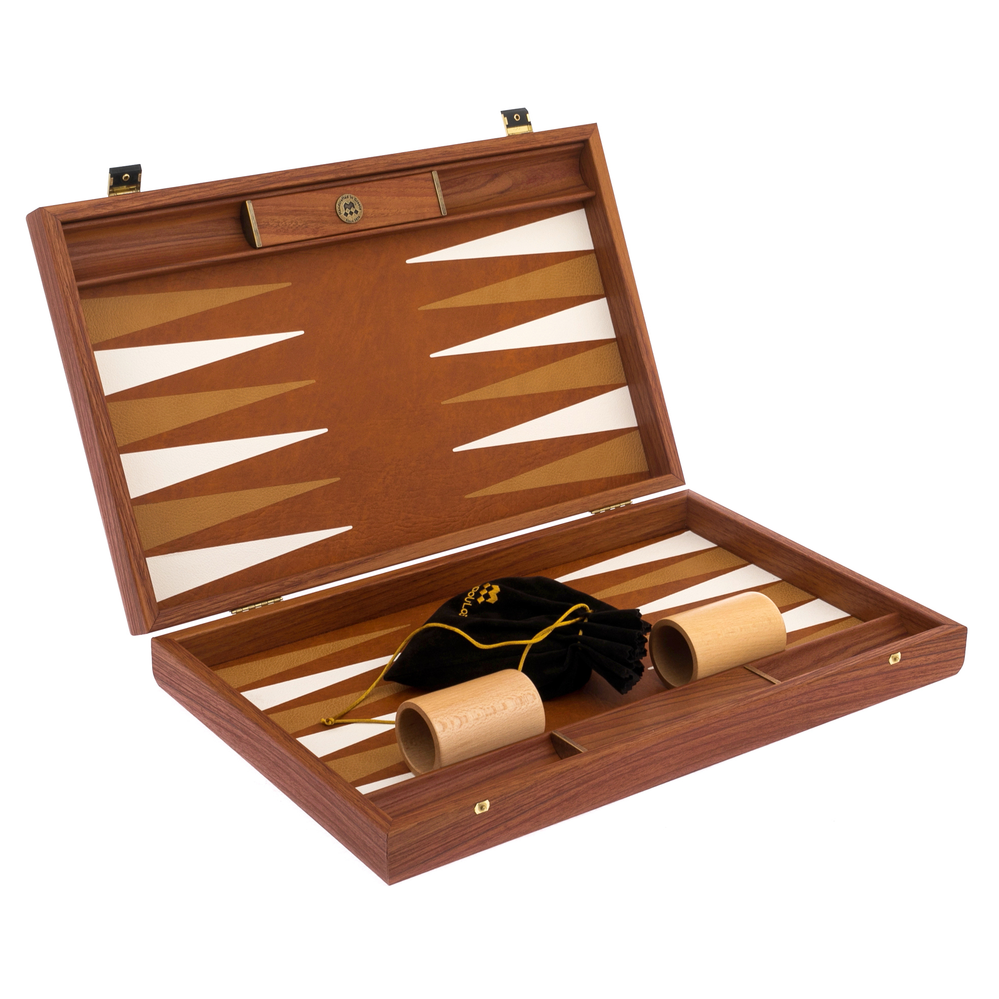 Комплектация: нарды, 30 шашек (15 черных и 15 белых), 4 кубика, 1 кубик для удвоения, комплект деревянных стаканчиков для игры в кости, подарочная коробка Manopoulos.