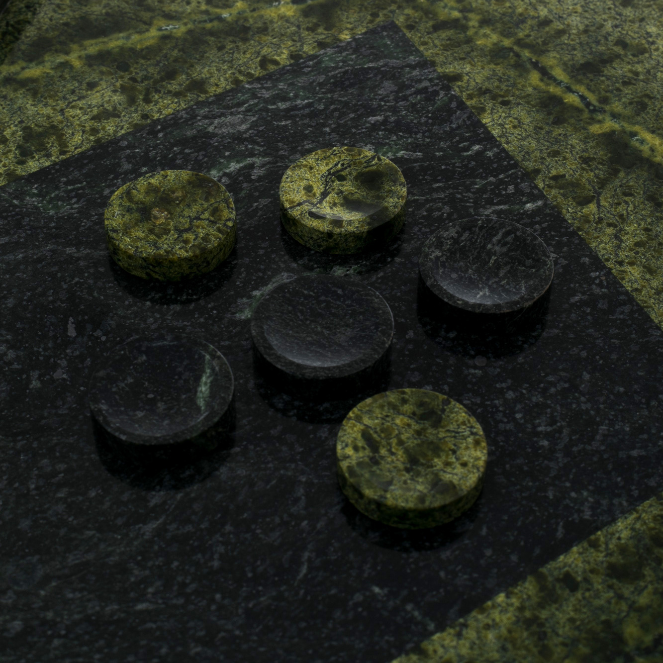 Эти нарды изготавливаются вручную. Работа мастера над камнем для придания ему уникальных форм и идеально ровной поверхности заслуживает восхищения. Текстура камня неповторима: невозможно изготовить двое совершенно одинаковых нард.