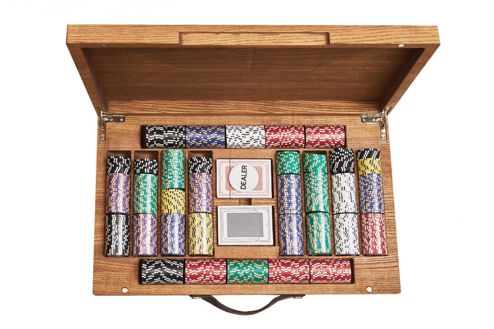 Номинал фишек:1-60шт, 5-120шт, 25-120шт, 50-100шт, 100-100шт, 500-60шт, 1000-40шт.