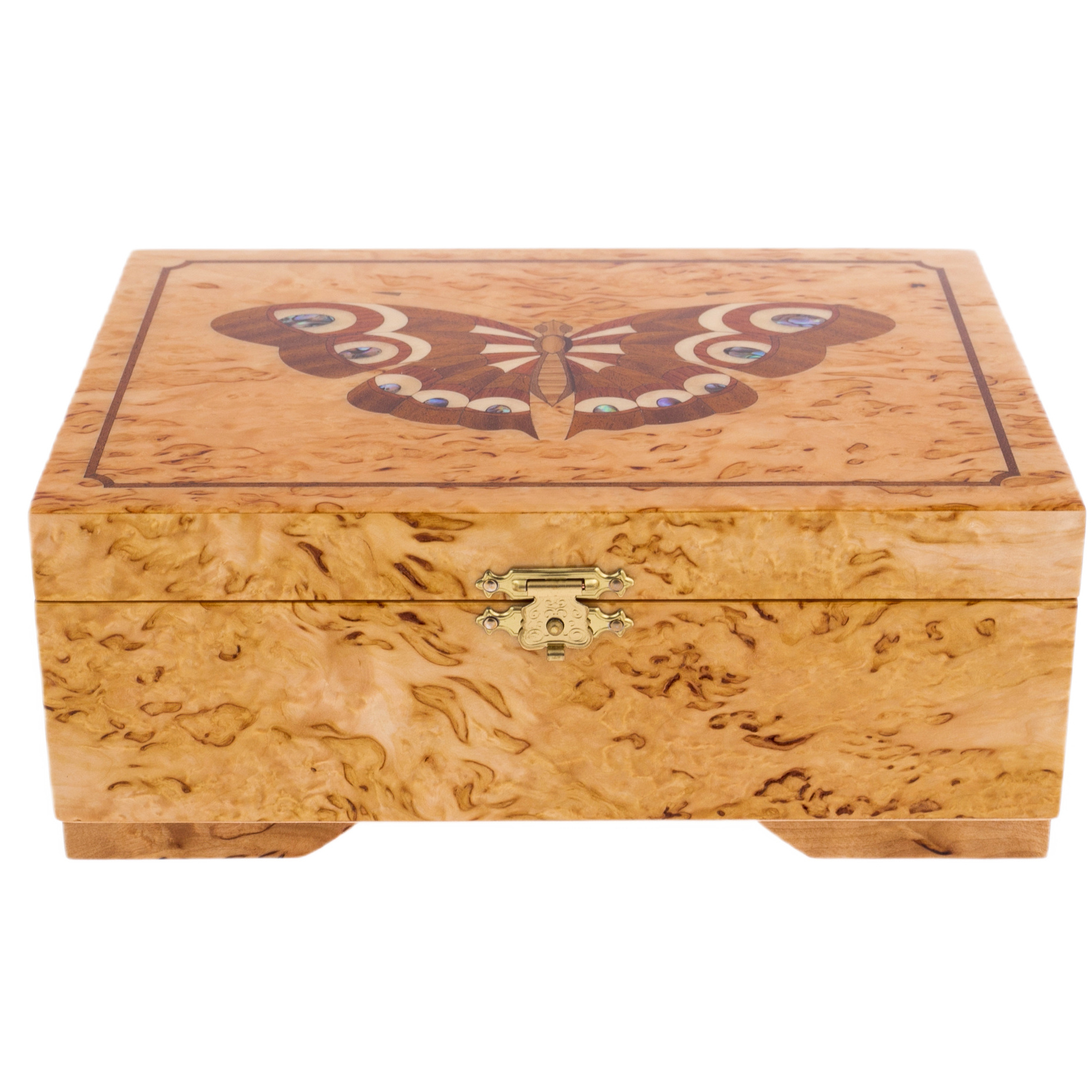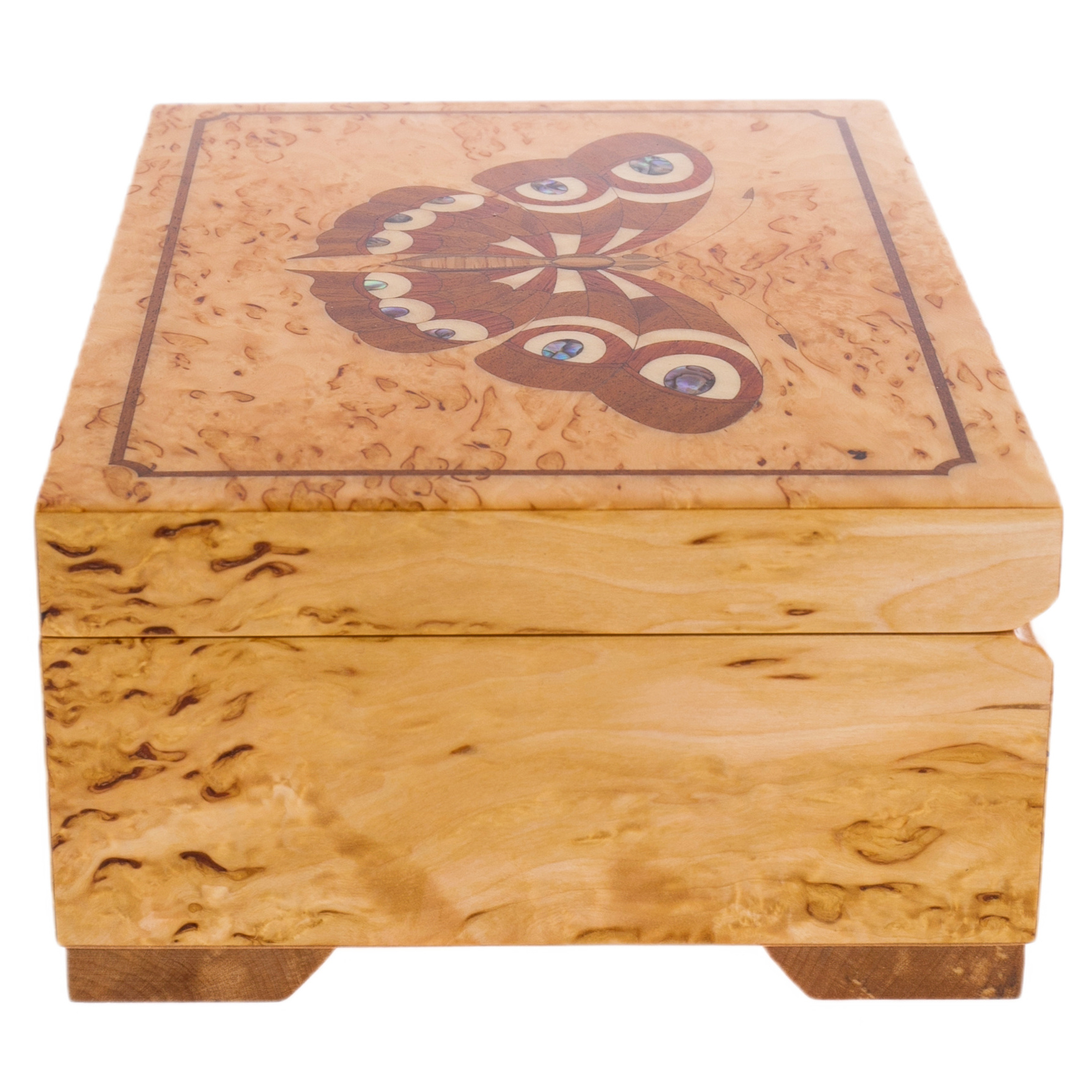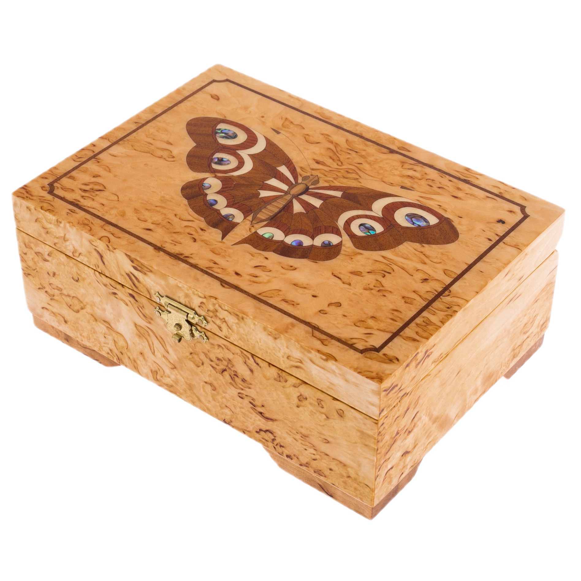 Шкатулка для украшений из карельской березы "Светлая бабочка"