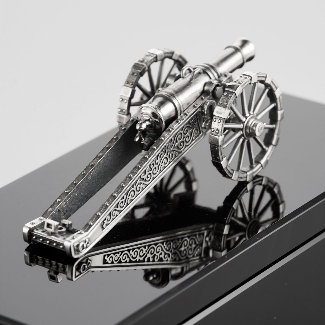 Шкатулка из обсидиана и серебра "Пушка"