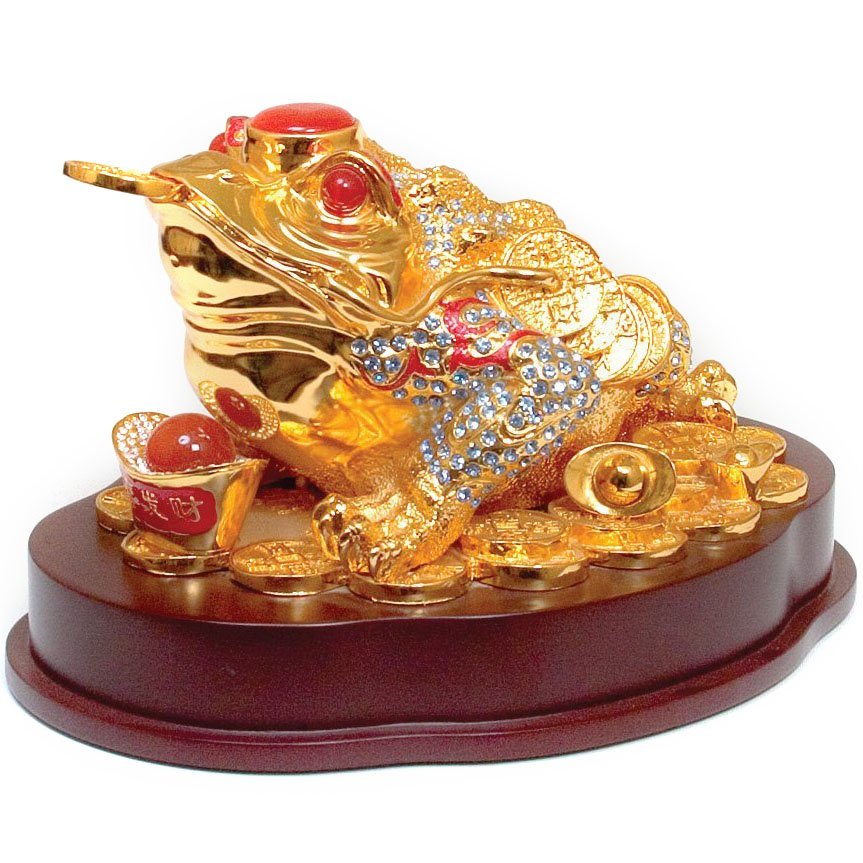 Фигура "Жаба гигант" изготовлена из металла и покрыто золотом.