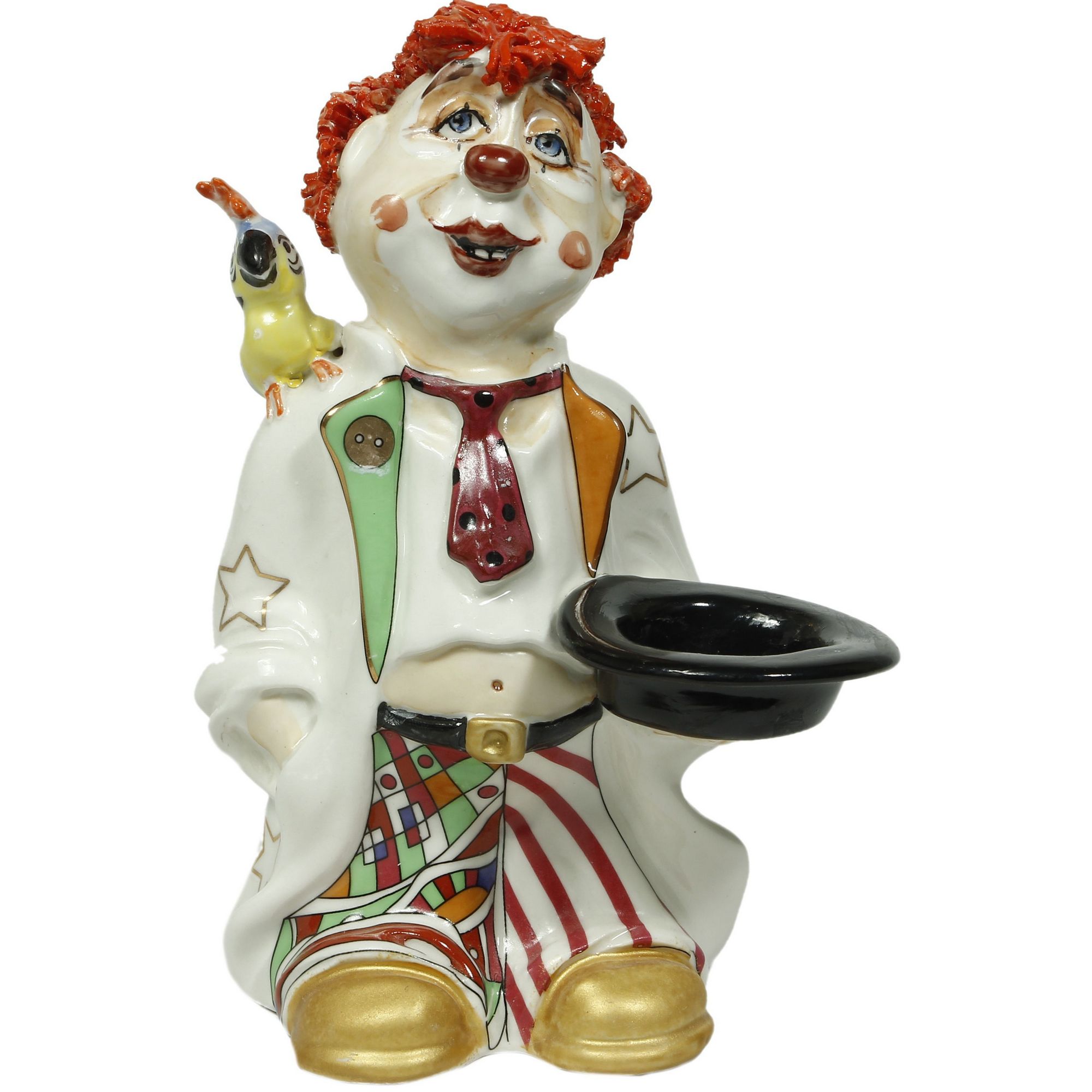 Скульптура из фарфора "Клоун с попугаем"