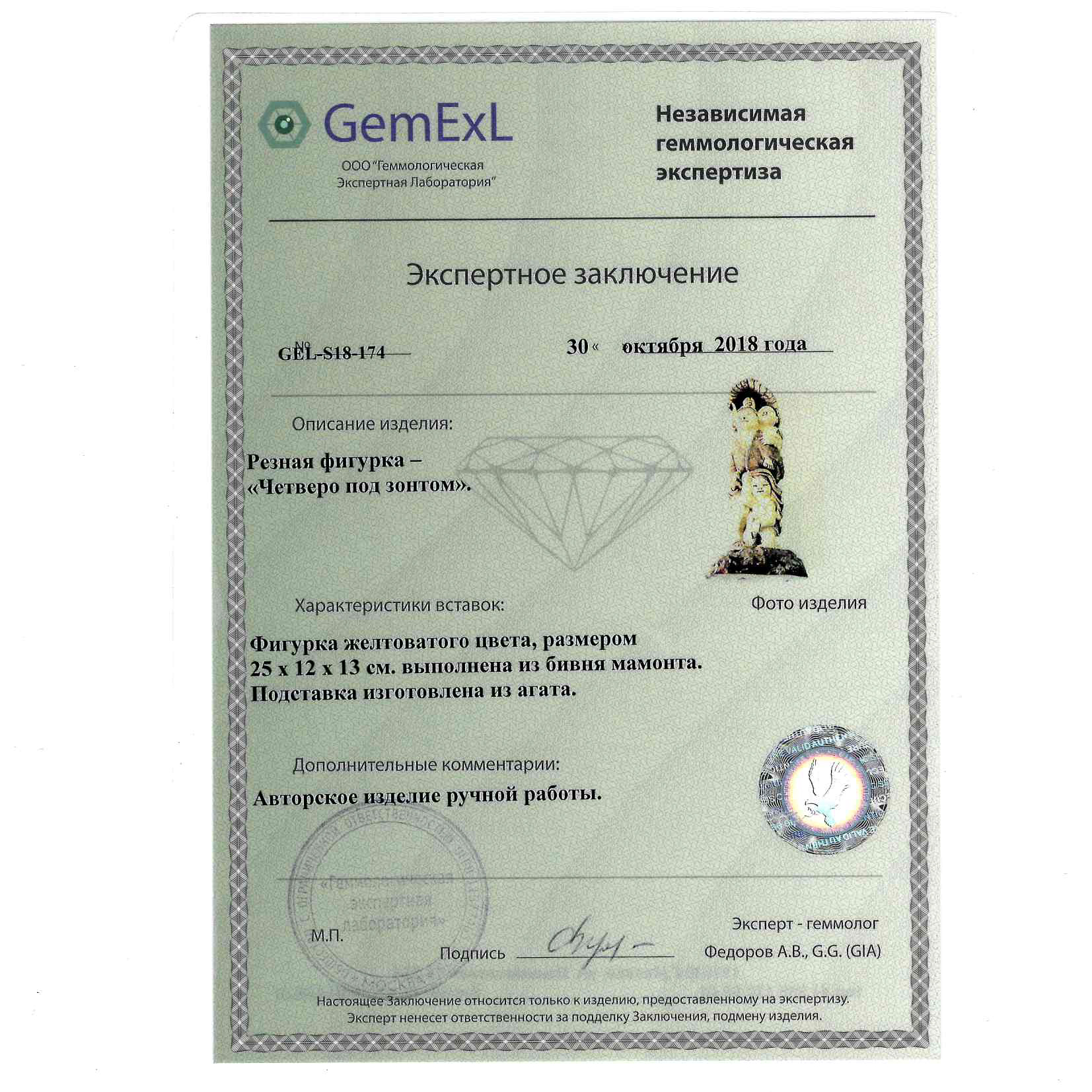 Сувенир из бивня мамонта "Семья с обезьянкой под зонтом"