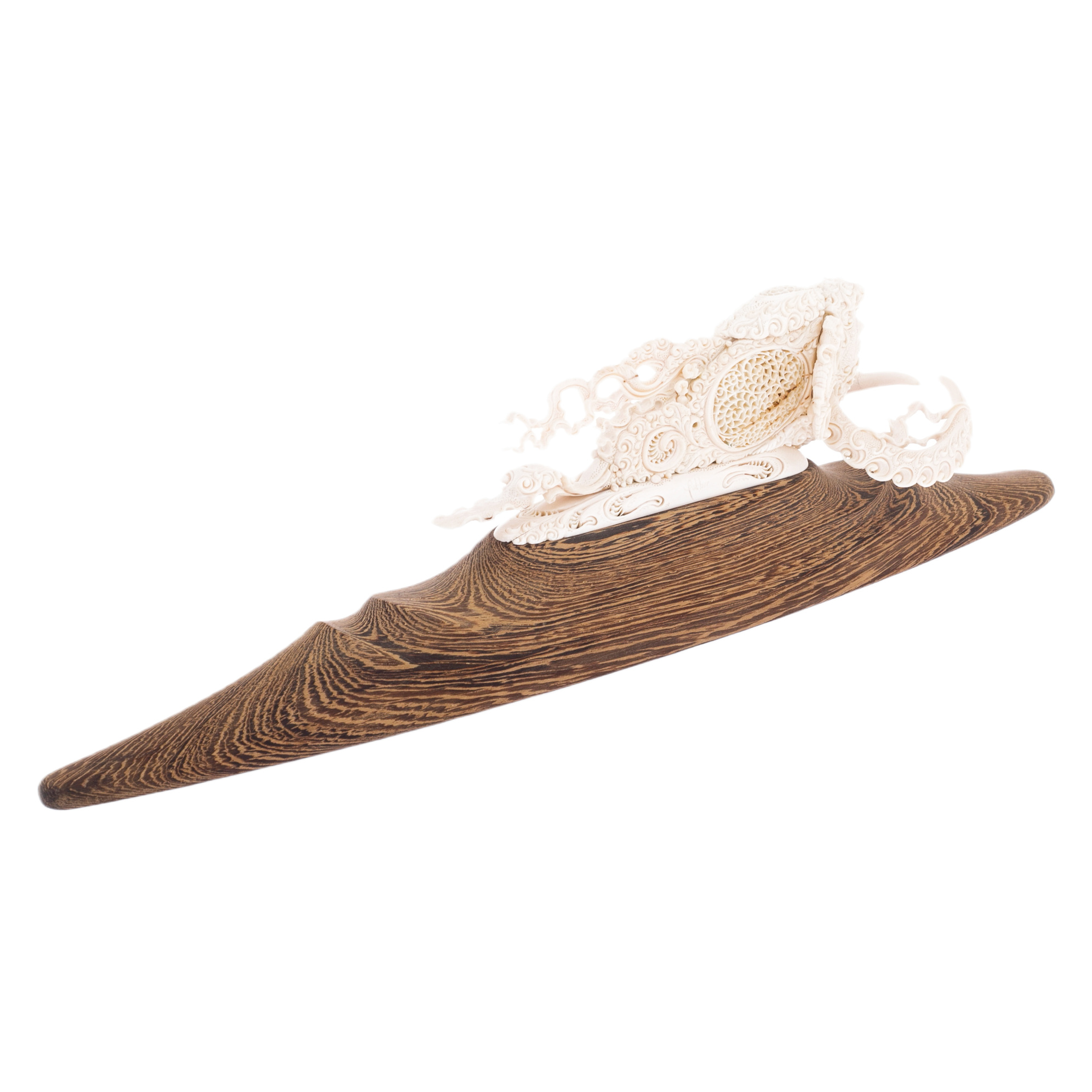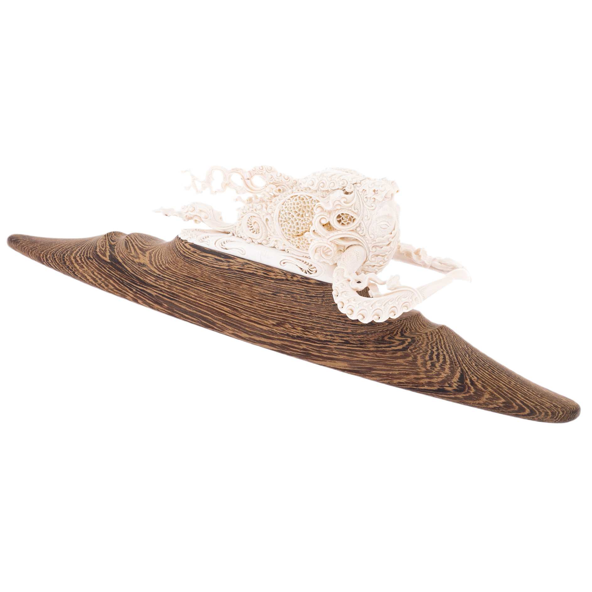 Тысячелетия хранили во льдах Сибири этот редкий материал — бивень древнего исполина, явившегося из глубины веков, словно напоминание о времени, когда сила, мудрость и стойкость определяли судьбу мира. Лишь рука истинного мастера способна пробудить дух ушедшей эпохи, превращая застывший во времени бивень в произведение, овеянное дыханием истории.