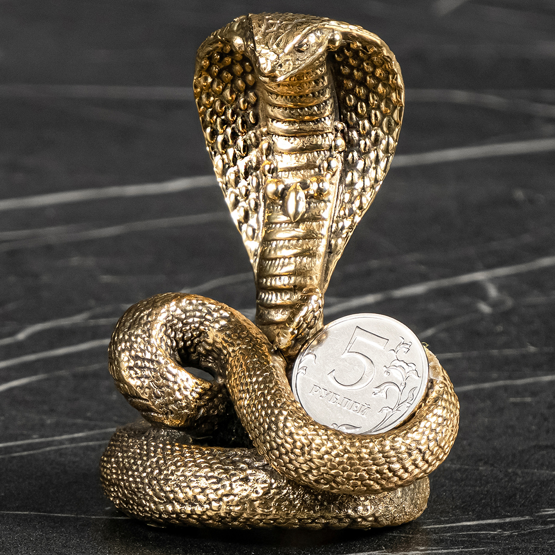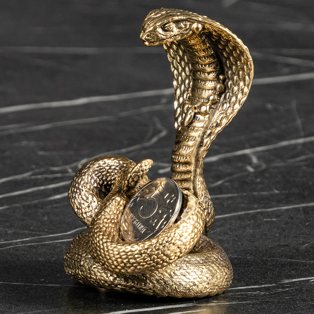 Статуэтка из патинированной латуни "Змея с монеткой"