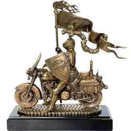 Авторская скульптура из бронзы "Рыцарь на Харлее" Авторская скульптура из бронзы "Рыцарь на Харлее" Статуэтки и скульптуры выполнены методом литья из бронзы – сплава меди с другими металлами. Бронзовые изделия отличаются прочностью, устойчивостью к коррозии и изысканным внешним видом. Бронза способна передать мельчайшие элементы и детали, выразить эмоции персонажа и в совершенстве воплотить задумку автора. Во все времена бронза была символом благородства, аристократичности и безупречного вкуса. Большой популярностью пользуется антикварная бронза, искусственно состаренная при помощи патинирования. Бронзовые изделия способны пережить века, а художественное литье из бронзы всегда ценилось как виртуозное искусство. Бронзовые скульптуры и статуэтки украсят интерьер и внесут в него нотки элегантности и сдержанной роскоши.