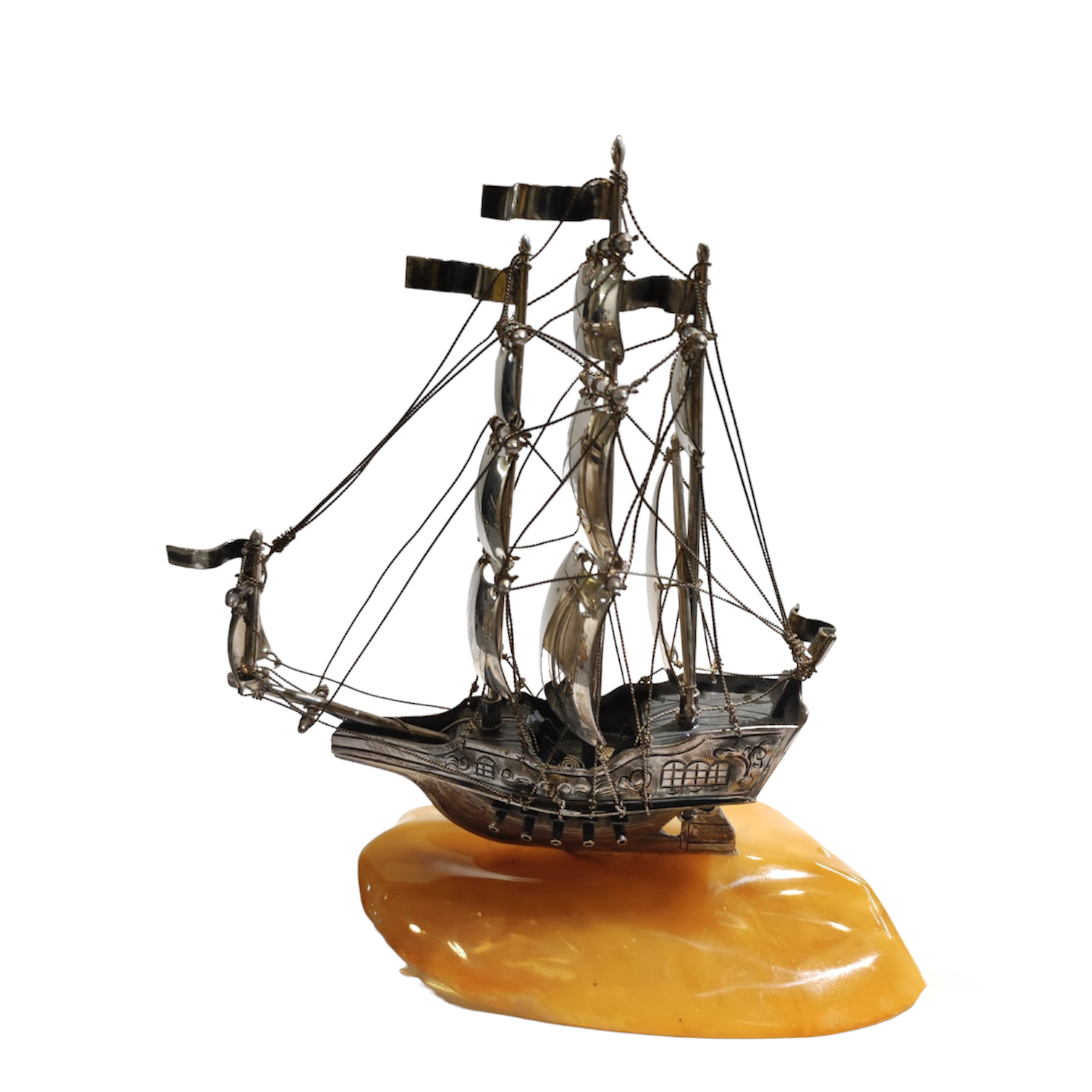 Статуэтка из янтаря и серебра "Парусник"