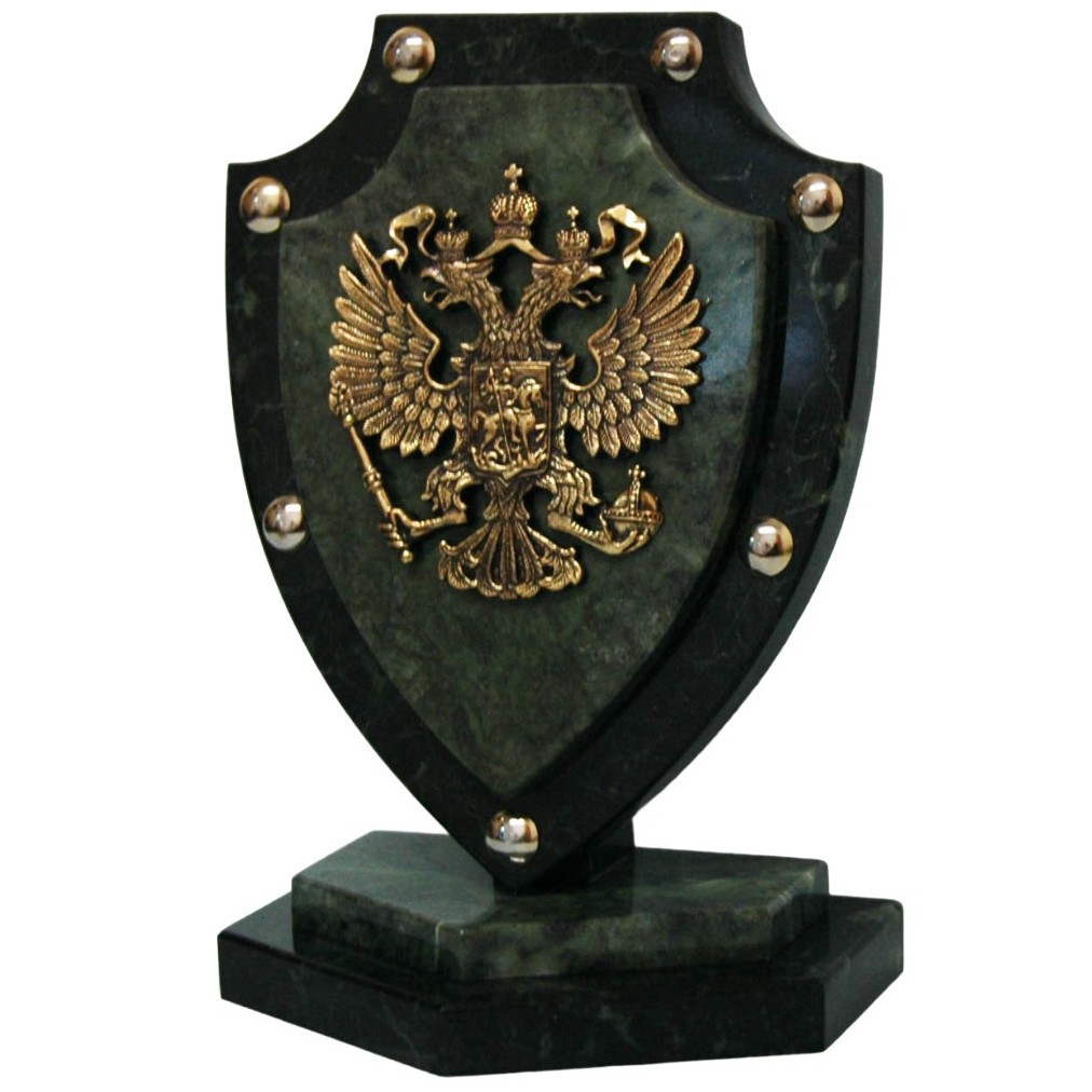 Сувенир из бронзы и змеевика "Щит. Герб России"