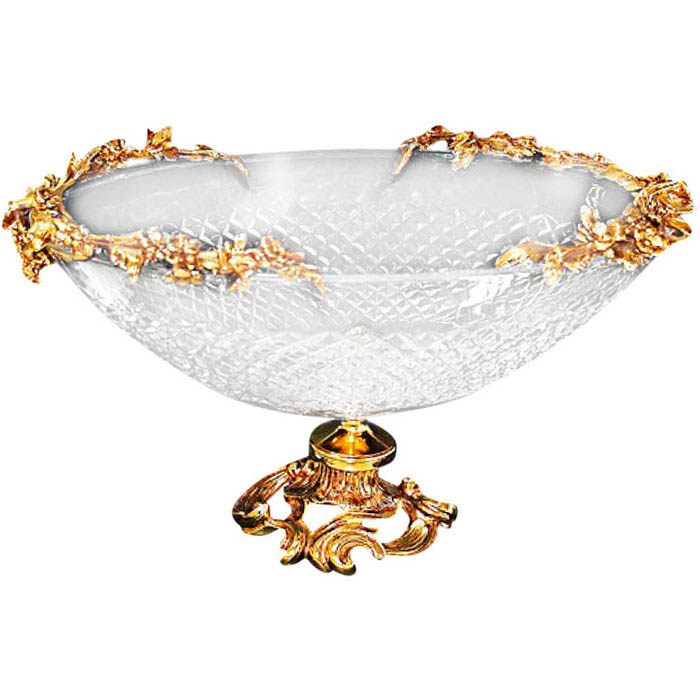 Овальная чаша «Версаль» — квинтэссенция изящества в материале, где свет и золото становятся соавторами формы. Хрустальная чаша, выполненная в технике глубокого алмазного гранения, сияет как застывший вихрь света. Прозрачная, но весомая, с рельефом в виде бриллиантовой сетки, она отсылает к традициям королевских мастерских XVIII века, где каждая вещь создавалась как продолжение дворцовой архитектуры и парадного жеста.