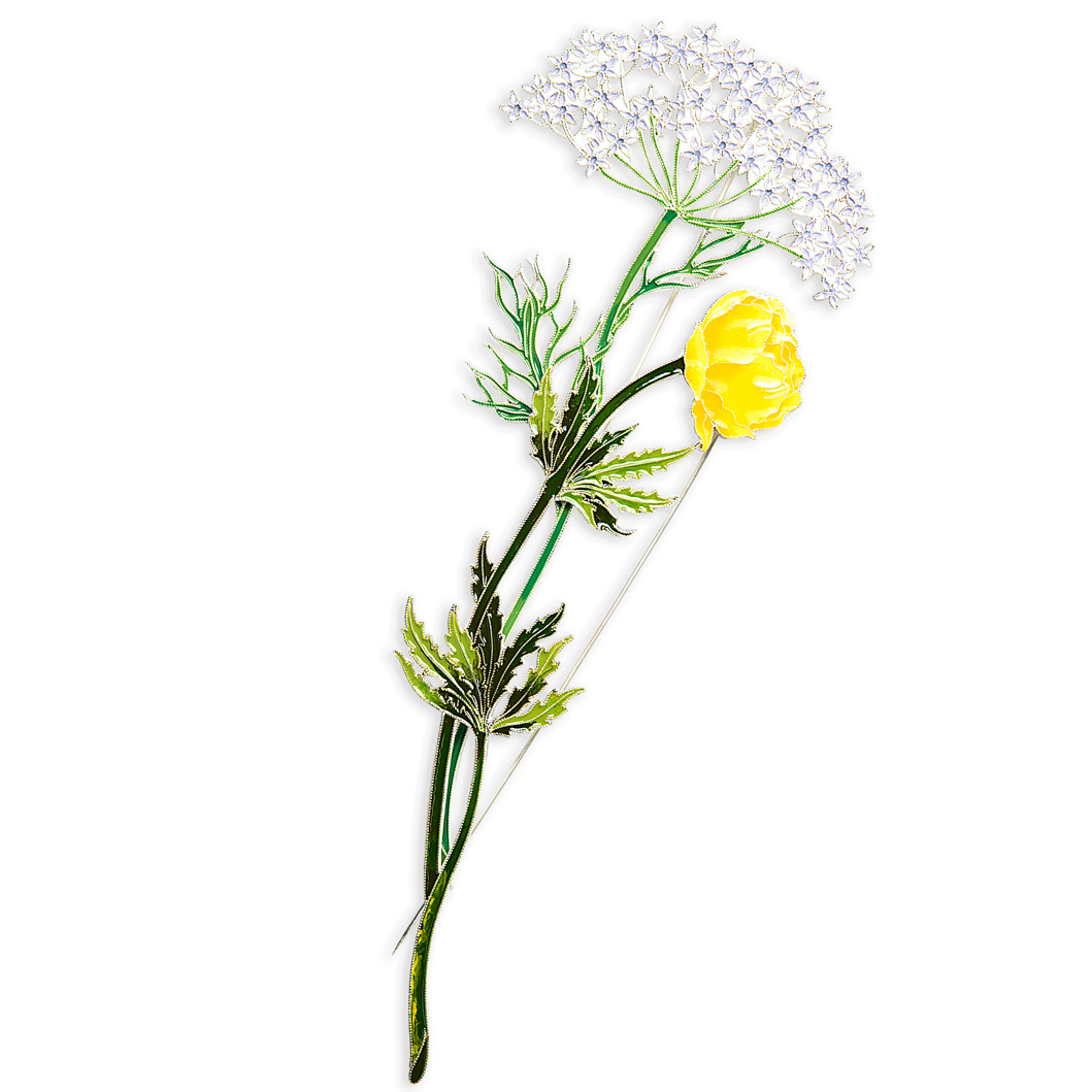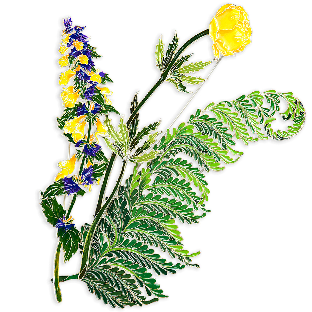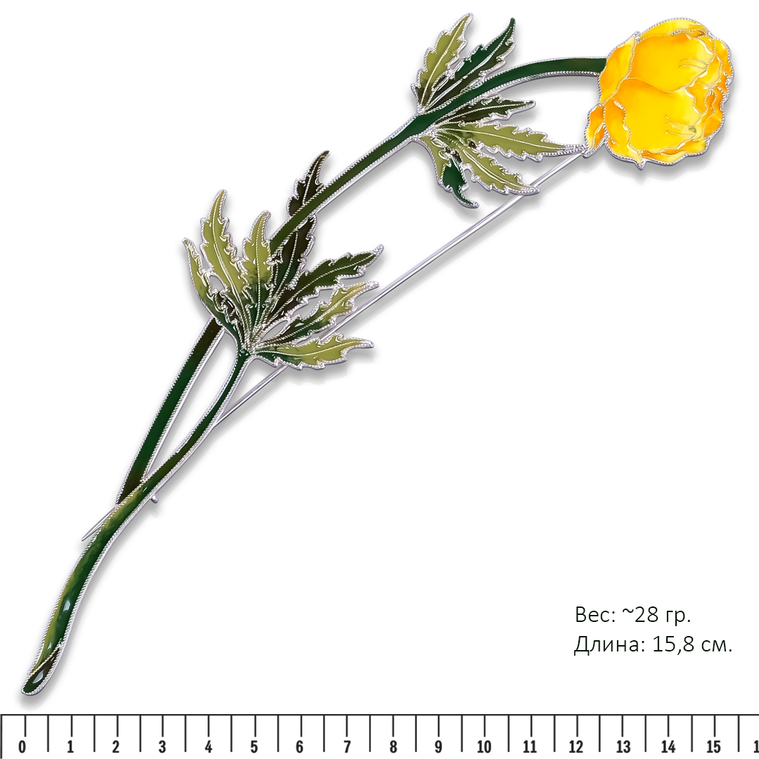 Брошь серебряная "Купальница" коллекции "Гербарий Татьяны Поляковой"