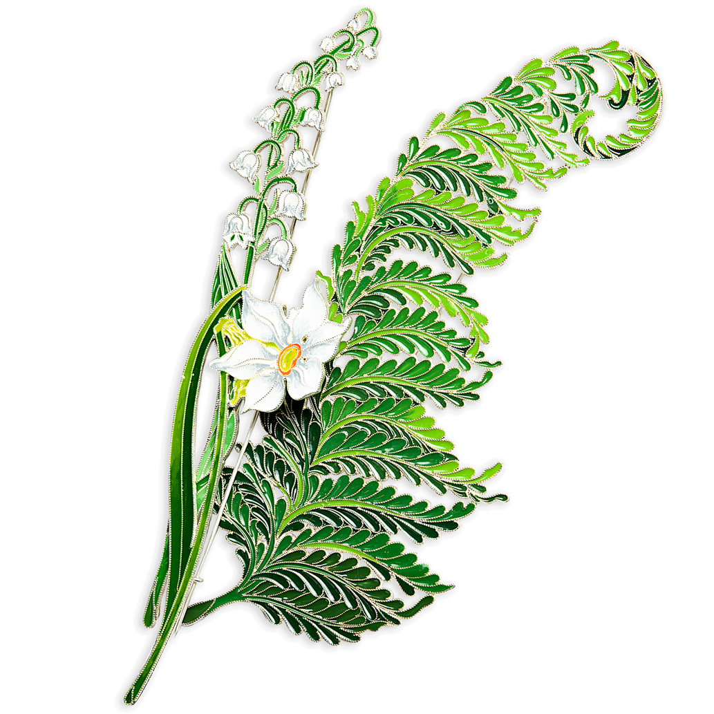 Брошь серебряная "Ландыш" коллекции "Гербарий Татьяны Поляковой"