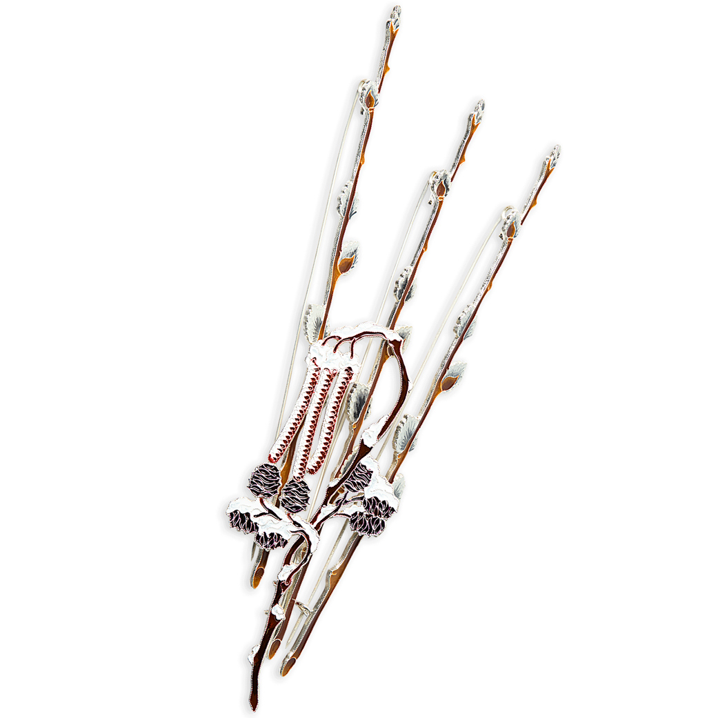 Брошь серебряная "Ольха" коллекции "Гербарий Татьяны Поляковой"
