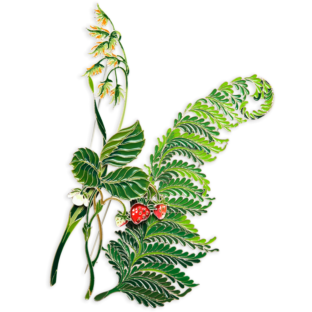 Брошь серебряная "Земляника" коллекции "Гербарий Татьяны Поляковой"