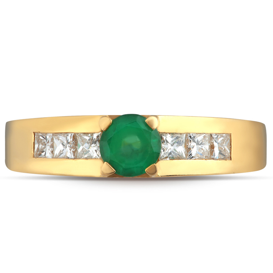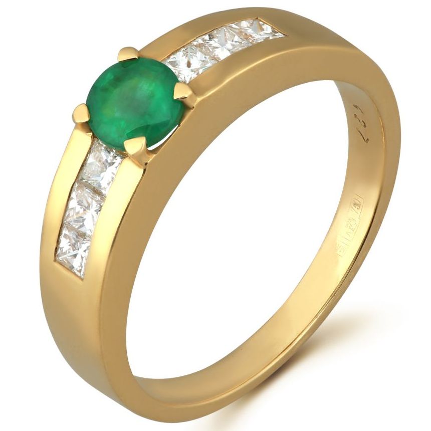 Кольцо из желтого золота с изумрудом и бриллиантами